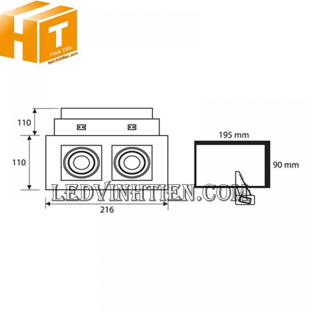 - Khoét lỗ: 195 x 90mm