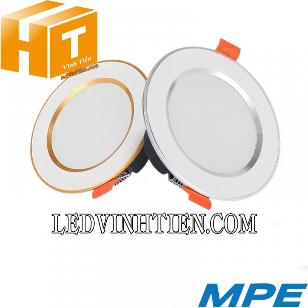 - Đèn led downlight MPE 9W có 3 loại ánh sáng trắng, vàng, trung tính tương ứng các mã DLB-9T, DLB-9V, DLB-9N.