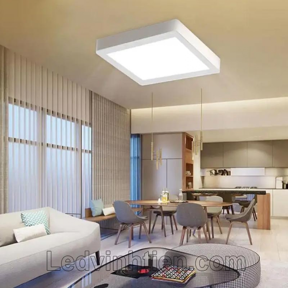 - Đèn led ốp trần vuông 6W 3 màu là lựa chọn tuyệt vời để tạo nên không gian phòng khách ấm cúng và tinh tế. Với khả năng chuyển đổi giữa 3 chế độ ánh sáng, bạn có thể thay đổi màu sắc phù hợp với từng hoạt động, từ tiếp khách đến thư giãn. Ánh sáng trắng làm sáng bừng không gian, ánh sáng trung tính tạo sự thoải mái và ánh sáng vàng giúp căn phòng trở nên ấm áp, gần gũi hơn.