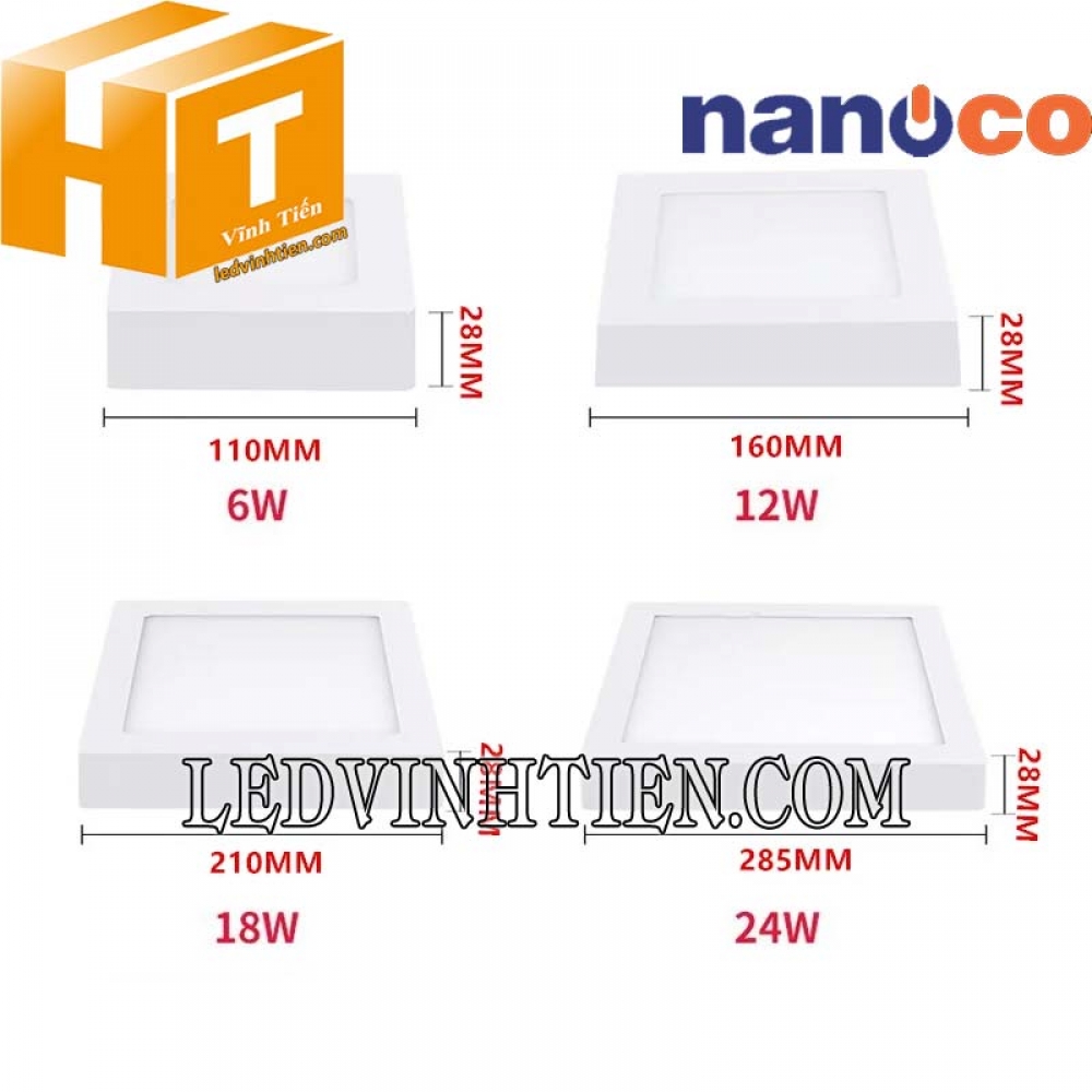 - Tên sản phẩm: Đèn led panel ốp trần vuông 12W, 18W, 24W Nanoco