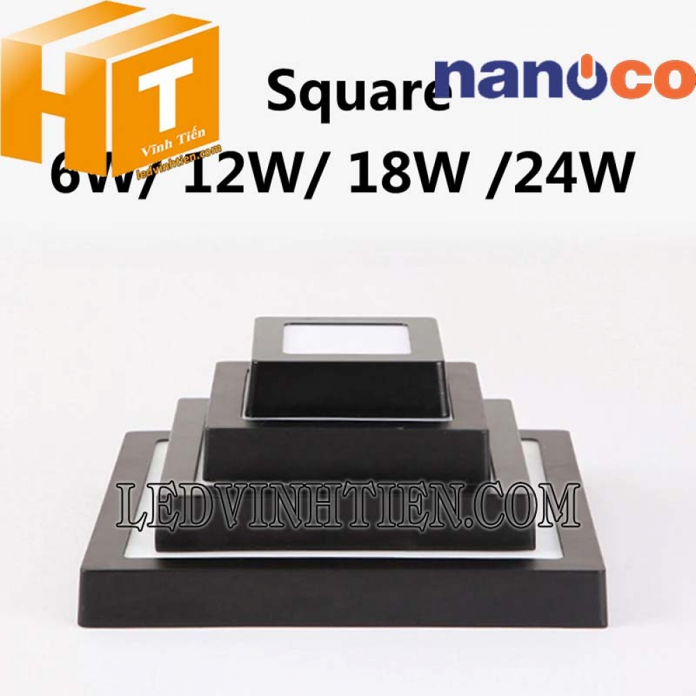 - Tên sản phẩm: Đèn led panel ốp trần vuông 12W, 18W, 24W viền đen Nanoco