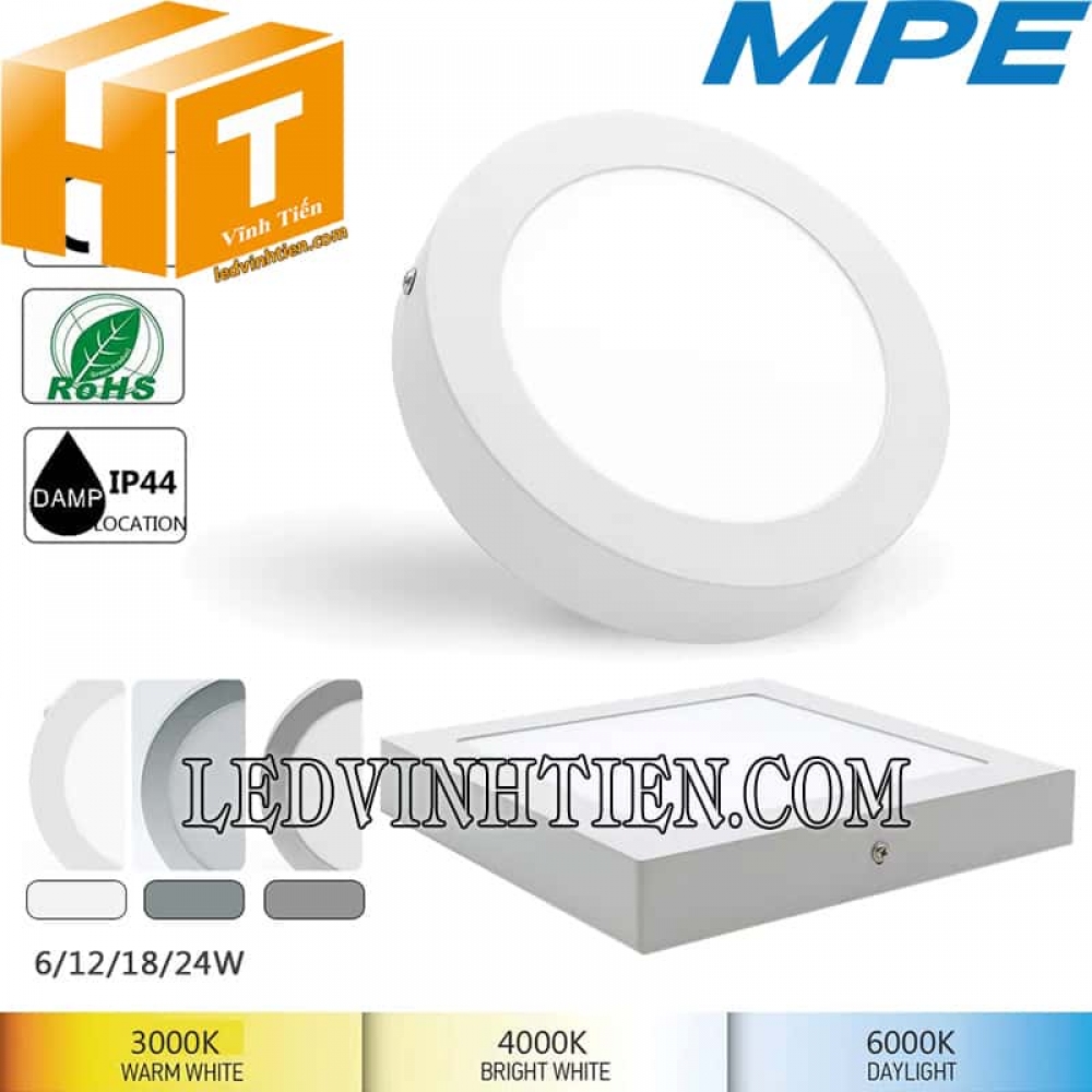 - Tên sản phẩm: Đèn led panel ốp trần nổi tròn 3 màu 12w MPE