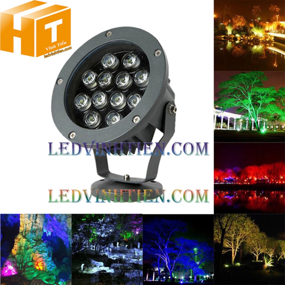 Ứng dụng đèn led spotlight 12W ánh sáng đổi màu dùng chiếu sáng cảnh quan chính hãng Ledvinhtien.com
