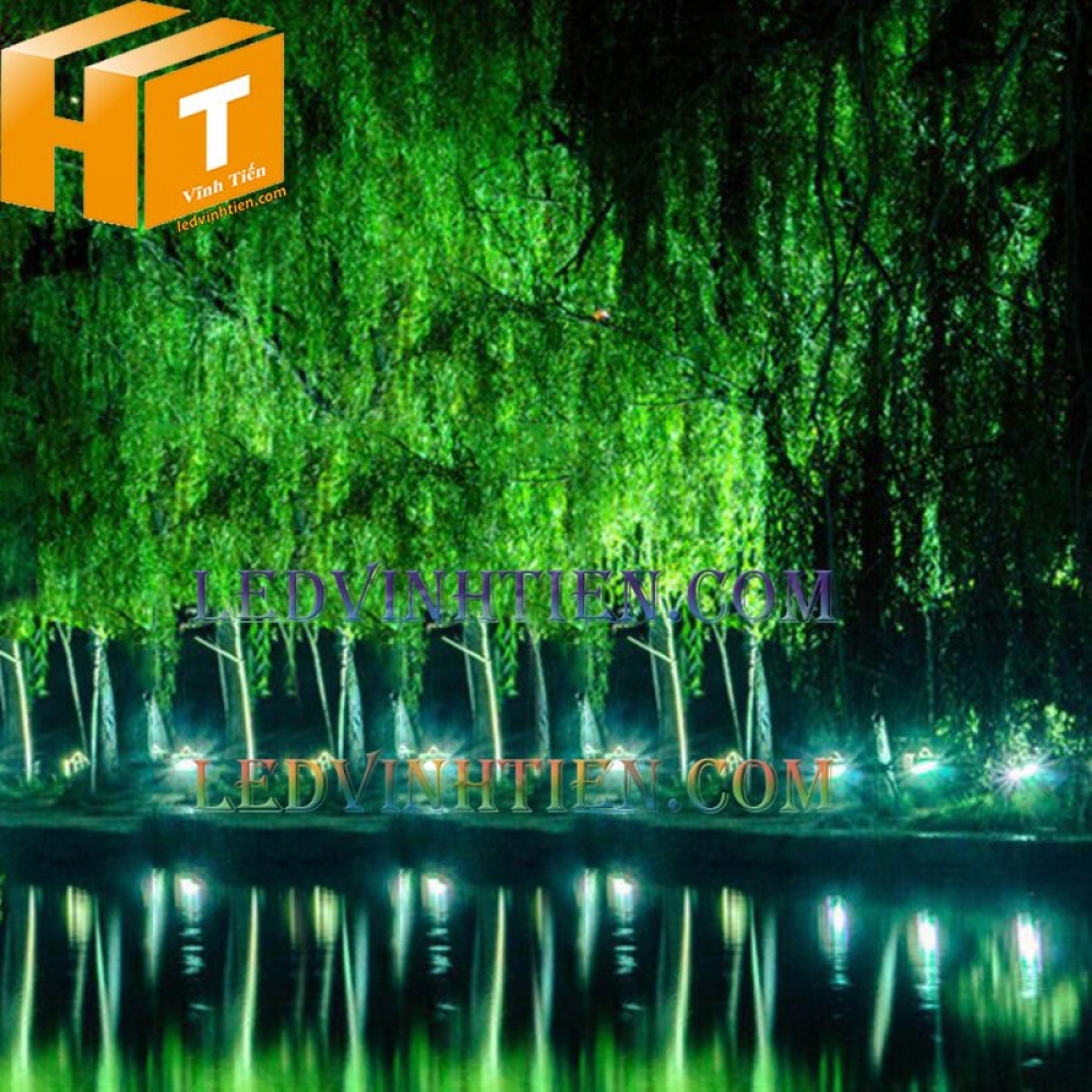 Ứng dụng đèn led spotlight 24W ánh sáng xanh lá dùng chiếu sáng cảnh quan chính hãng Ledvinhtien.com