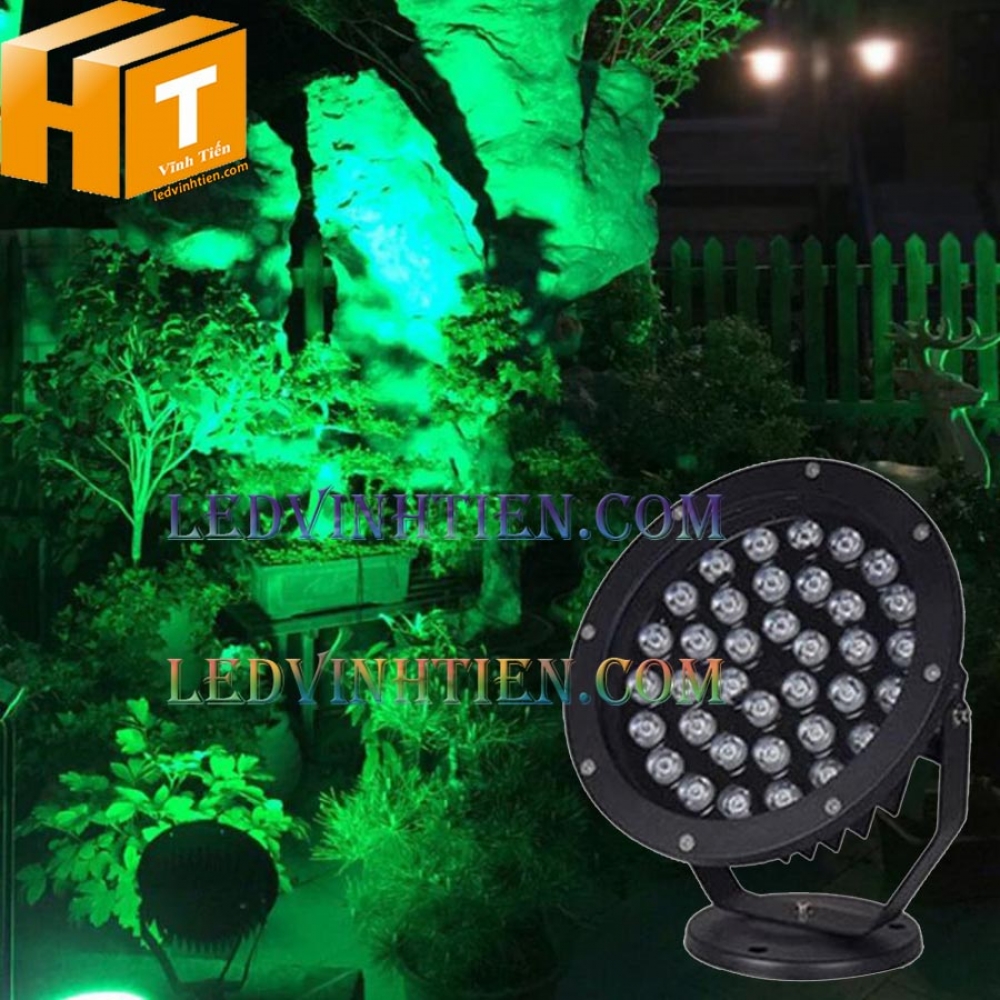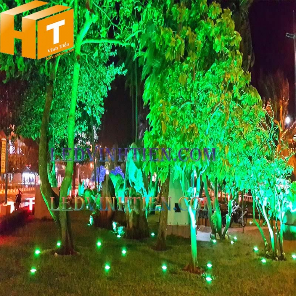 Ứng dụng đèn led spotlight 36W ánh sáng xanh lá dùng chiếu sáng cảnh quan chính hãng Ledvinhtien.com