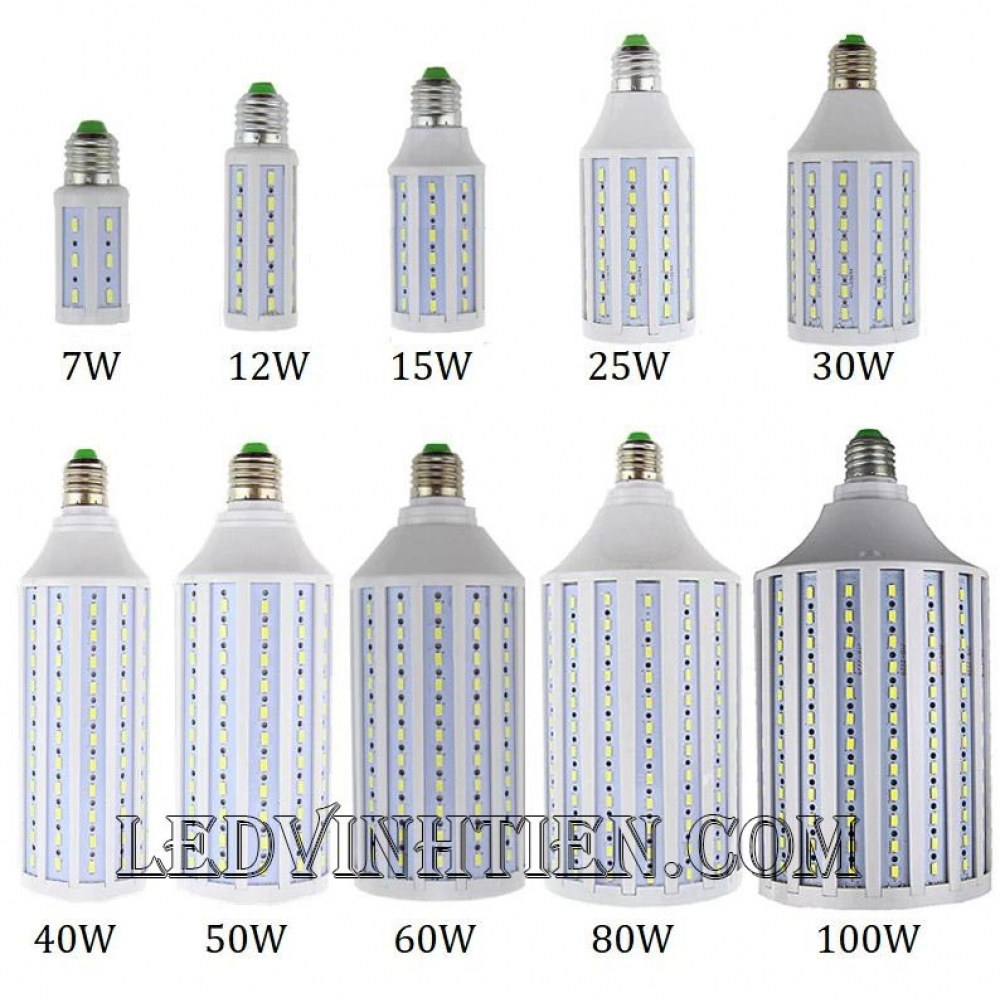 Thông lượng phát sáng của từng công suất bóng đèn led trái bắp