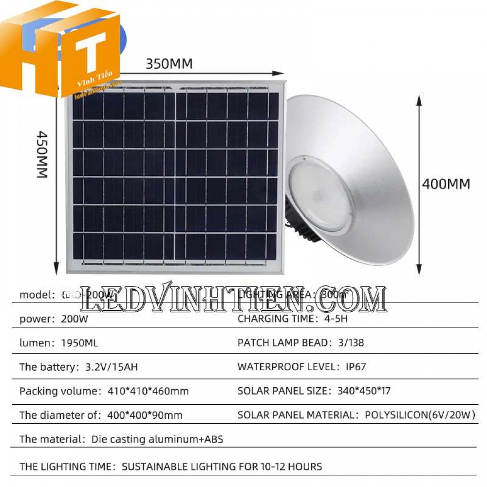 - Tên sản phẩm: Đèn led nhà xưởng năng lượng mặt trời 100W