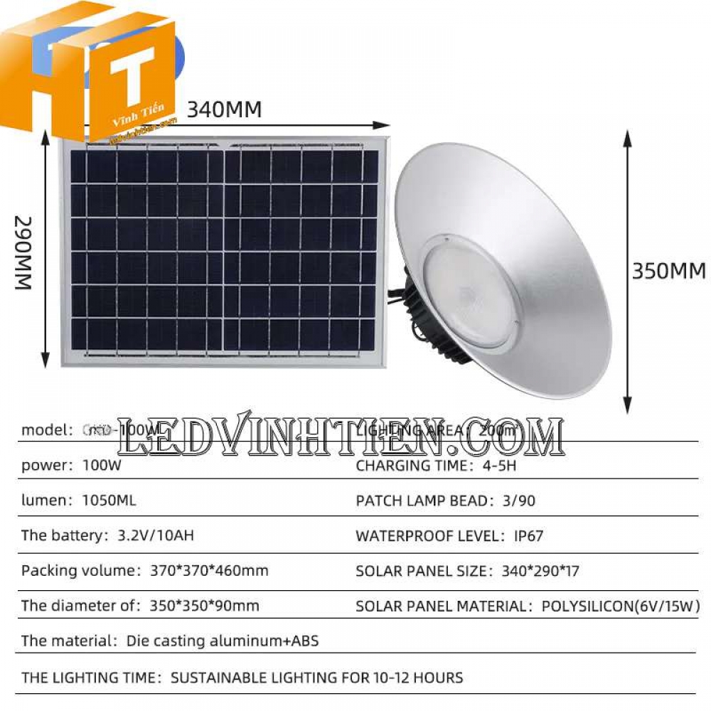 Đèn led nhà xưởng năng lượng mặt trời 150w - Vĩnh Tiến