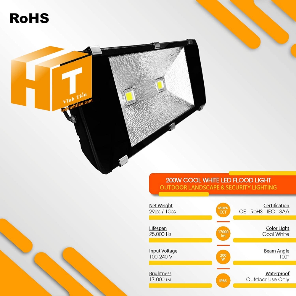 Thông số kỹ thuật đèn pha led 200W Vĩnh Tiến loại tốt, giá rẻ, chất lượng dùng ngoài trời