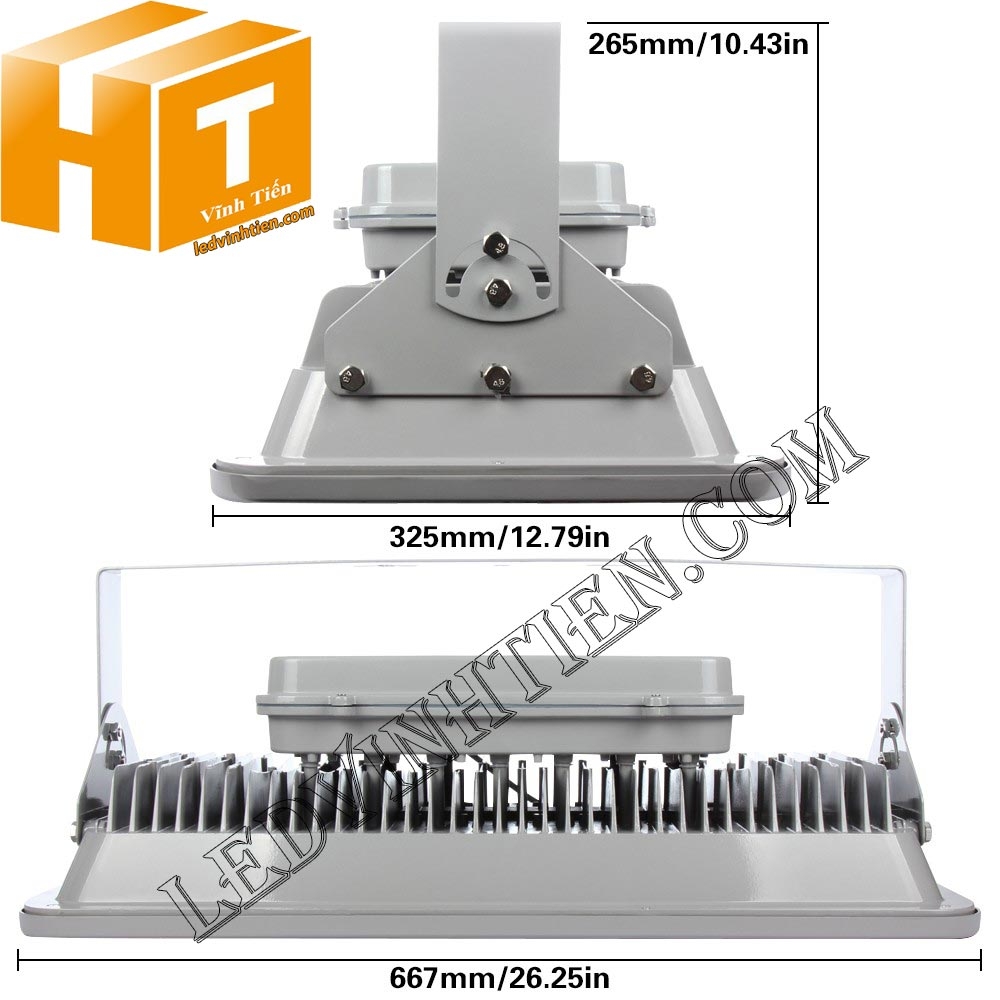 Hình ảnh chi tiết từng góc cạnh của đèn pha led 250W vỏ xám loại tốt, giá rẻ, chất lượng, ngoài trời, chính hãng ledvinhtien.com