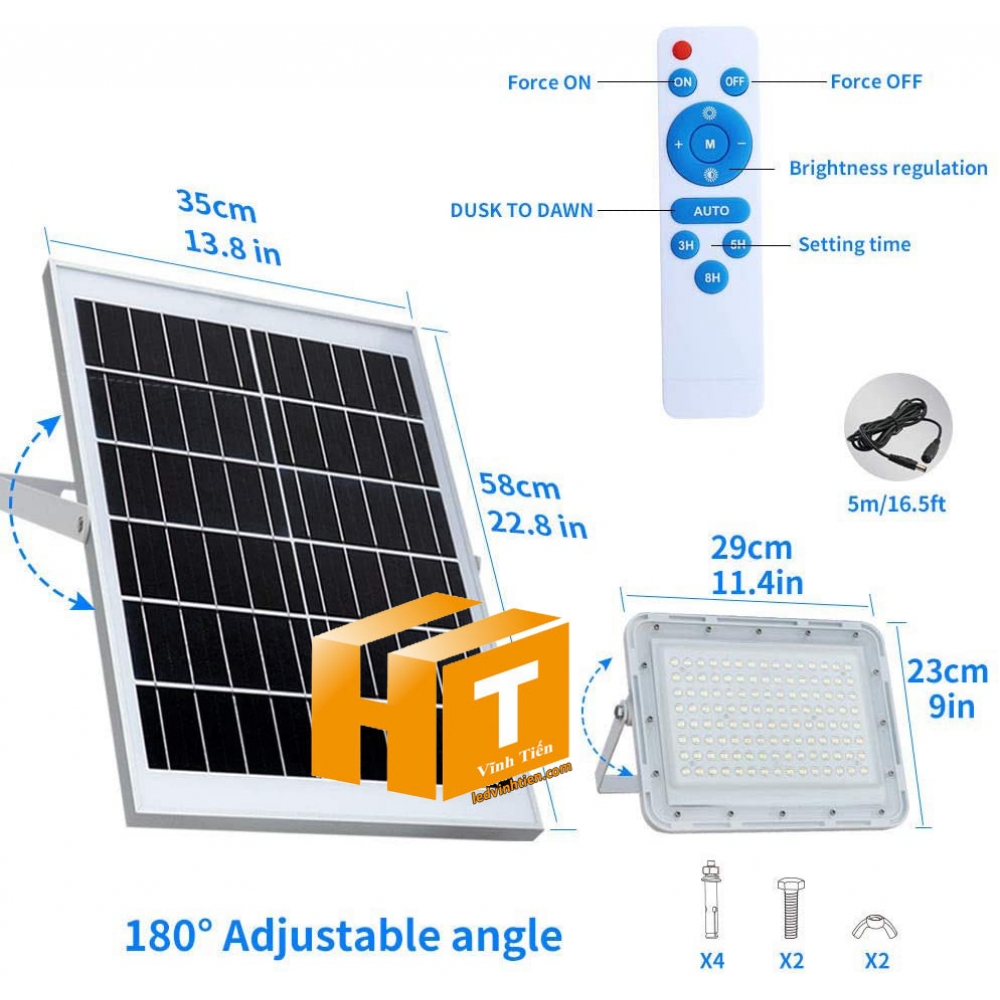 Thông số kỹ thuật đèn pha led năng lượng mặt trời thấu kính 300W loại tốt, giá rẻ, dùng ngoài trời, ledvinhtien.com