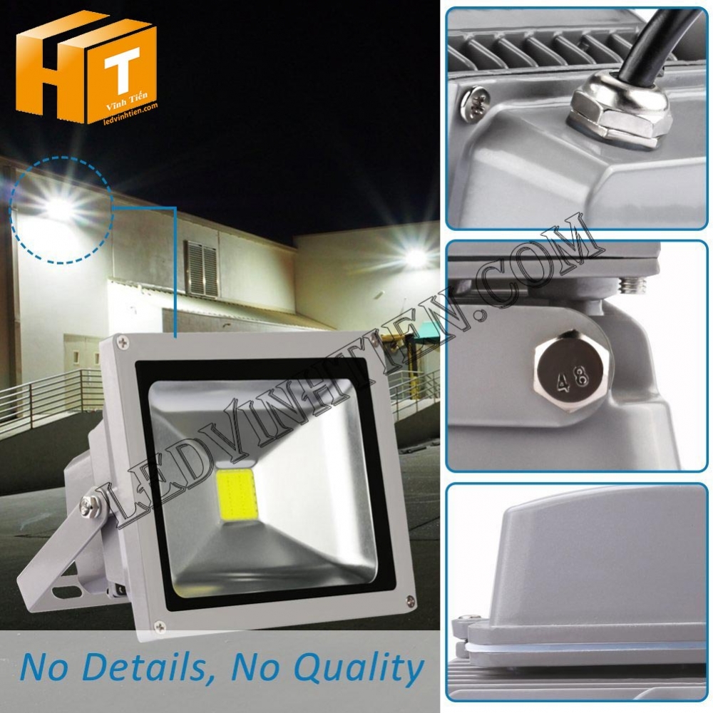 Hình ảnh chi tiết từng góc cạnh của đèn pha led 20W vỏ xám loại tốt, giá rẻ, chất lượng, ngoài trời, chính hãng ledvinhtien.com