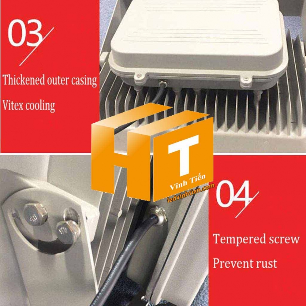 - Cài đặt dễ dàng và thuận tiện, Đèn pha ly LED của công ty đèn led Vĩnh Tiến ngoài trời của chúng tôi có thể được cài đặt rất đơn giản. Bạn chỉ cần cài đặt giá đỡ trên các lỗ lắp đã chuẩn bị, sau đó kết nối các ốc vít để cố định thiết bị.