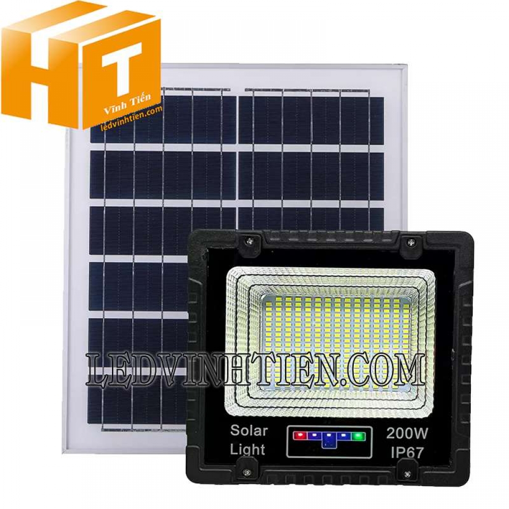 - Đèn pha 200W năng lượng mặt trời có thể điều khiển bằng remote, lớp vỏ nhôm, thường dùng để chiếu sáng công trình, cầu cảng, quảng trường, nhà ga, đường hầm, công viên, khu vui chơi, du lịch, sự kiện ngoài trời,….