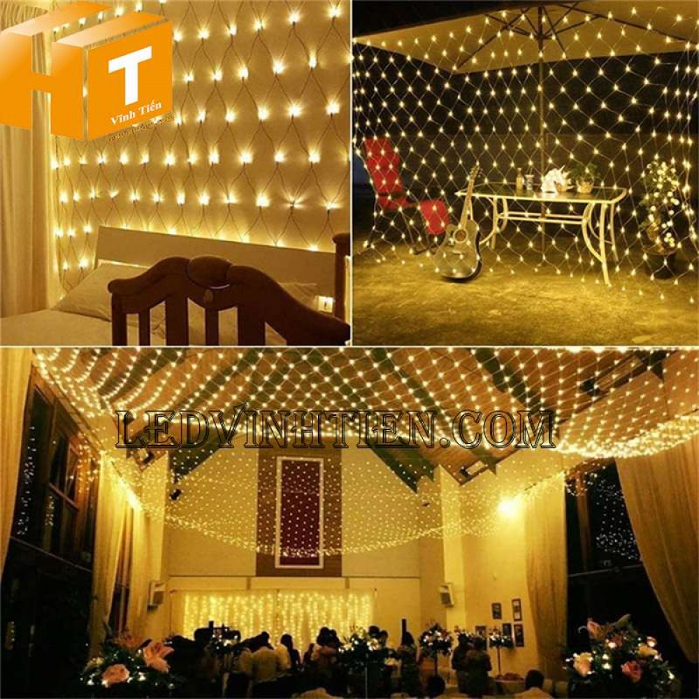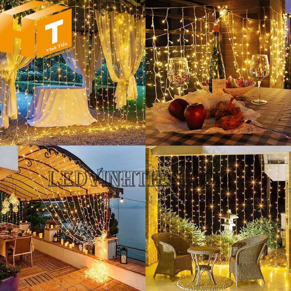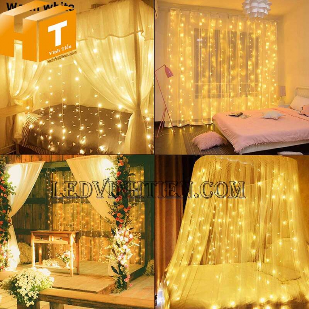 Đèn Rèm Buông LED Hiệu Ứng Thác Đổ, Mưa Rơi Màu Vàng Nắng Vĩnh Tiến