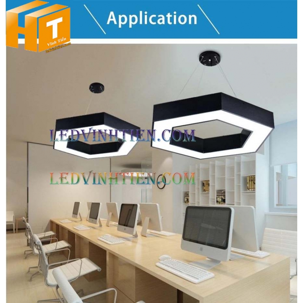Đèn led thả văn phòng là loại đèn led có ánh sáng chiếu trực tiếp từ trên xuống cung cấp ánh sáng cho không gian nhưng không làm chói mắt, tăng tính thẩm mỹ và giảm khả năng cận thị, có hiệu suất chiếu sáng cao, ánh sáng đều. Dáng hình lục giác rỗng ở giữa với đường kính 600mm, loại đèn này được sử dụng rộng rãi trong việc trang trí nội thất gia đình, nhà hàng phục vụ cho việc chiếu sáng tại các phòng như phòng ngủ, bếp, khách, hội nghị, tập thể dục,… Ưu điểm của đèn thả văn phòng hình lục giác là có thể chiếu sáng tại cả những nơi khó lắp đặt hay những nơi cao tầng. Hơn thế nữa, đèn có 3 màu ánh sáng trắng, vàng, trung tính tha hồ lựa chọn. Đèn led này có thân đèn làm bằng hộp kim nhôm thiết kế sang trọng, tản nhiệt nhanh chóng thích hợp cho việc trang trí và chiếu sáng cho những nơi như siêu thị, bệnh viện, khách sạn, trung tâm thương mại, trường học, văn phòng, công ty, phòng tập thể hình (gym), resort… Tạo cho ngôi nhà, văn phòng trở nên sang trọng, độc đáo, hiện đại, trẻ trung, quý phái thu hút mọi ánh nhìn.