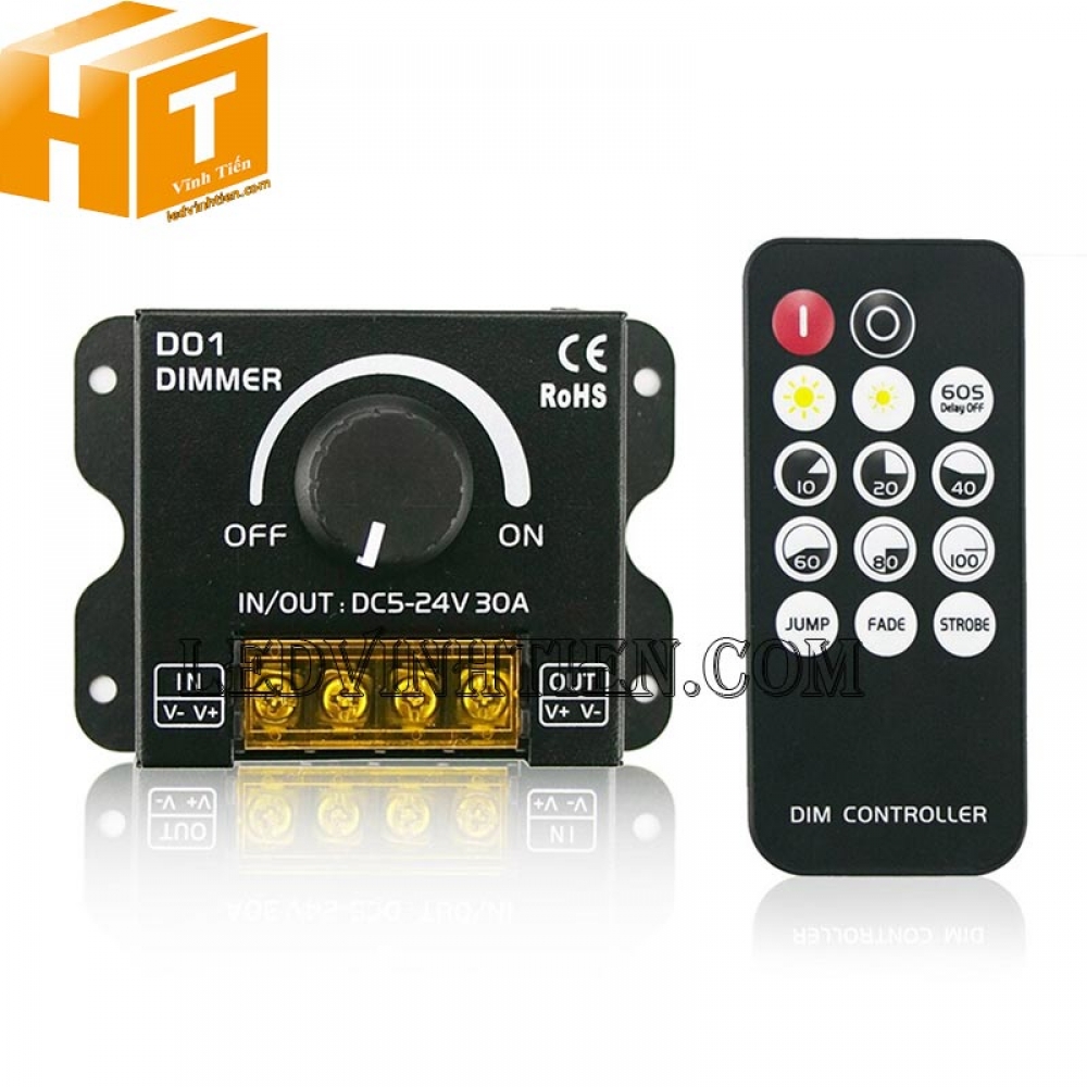 - Tên sản phẩm: Dimmer 12-24V 30A có remote