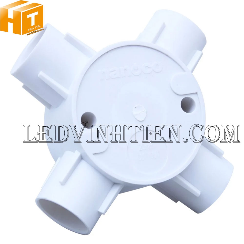 - Hộp nối 4 ngã Nanoco, panasonic PVC chịu được điện áp cao, đảm bảo an toàn cho các thiết bị dây dẫn bên trong.