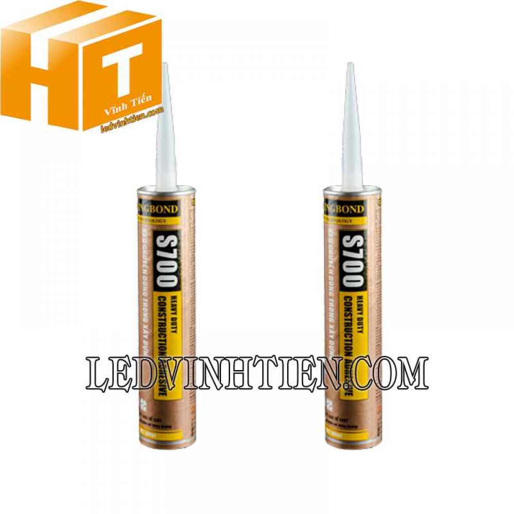 Keo dán S700 Kingbond là keo xây dựng đa năng cao cấp được sản xuất từ cao su polymer. Keo có độ bám dính cao, được dùng thay thế phương pháp gắn kết cơ khí như đinh, vít, sử dụng phù hợp với hầu hết các loại vật liệu xây dựng. Keo có độ dẻo dai sau khi khô, không rạn nứt bong tróc, có thể sơn phủ sau khi khô. Keo sử dụng để dán ghép vật liệu sắt thép, gỗ, nhôm nhựa, mica bê tông..... Đặc biệt phù hợp cho thi công quảng cáo bằng tấm nhôm nhựa (Alu).