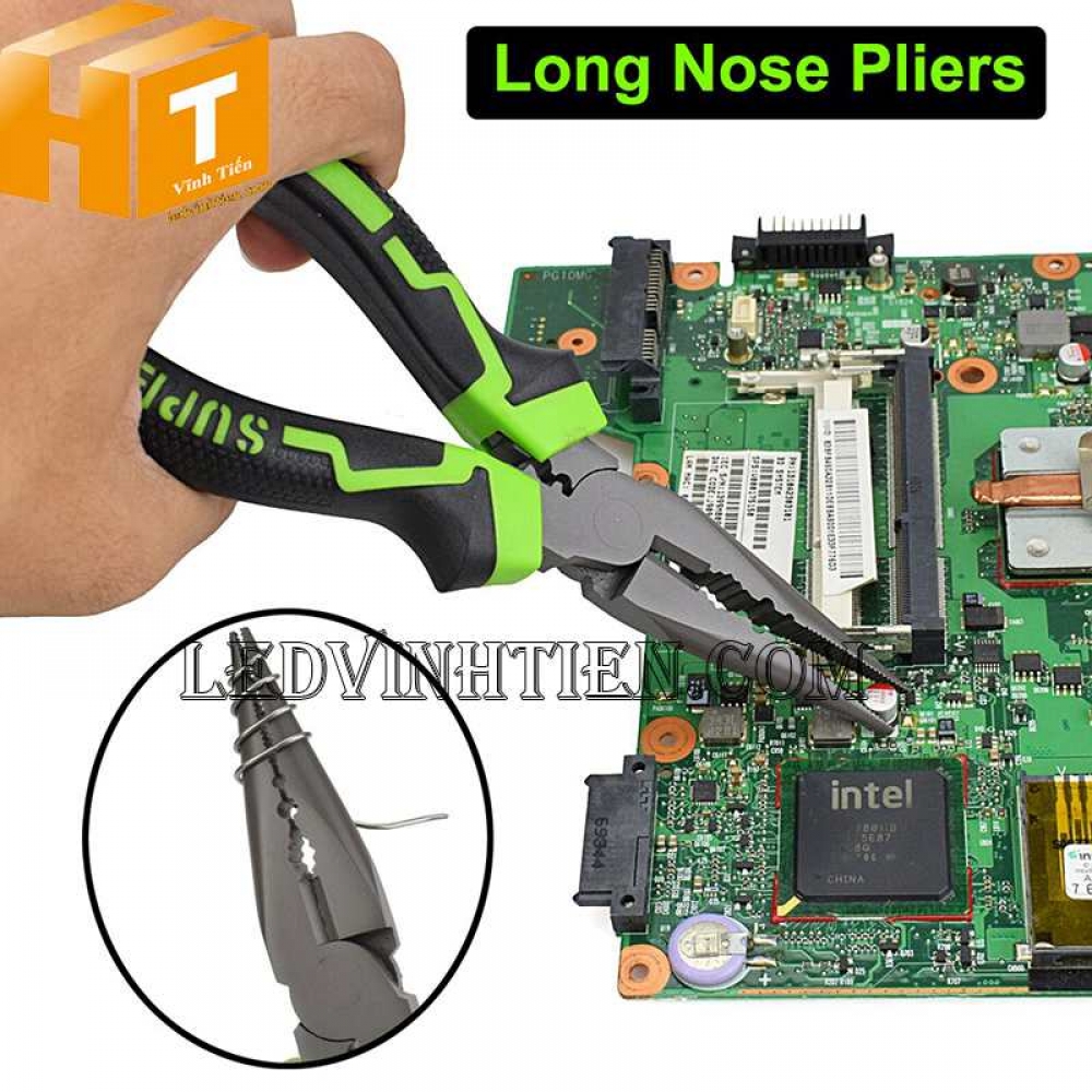 Kìm mỏ nhọn dùng để kẹp, giữ hay quấn các vật dụng nhỏ trong không gian hẹp mà những dụng cụ cầm tay khác không làm được. Với ưu điểm mỏ nhọn, dài rất tiện lợi trong việc quấn những sợi dây điện, dây thép, dây đồng, gắp, hàn nối linh kiện… được dụng trong ngành điện, cơ khí và xây dựng, điện tử.