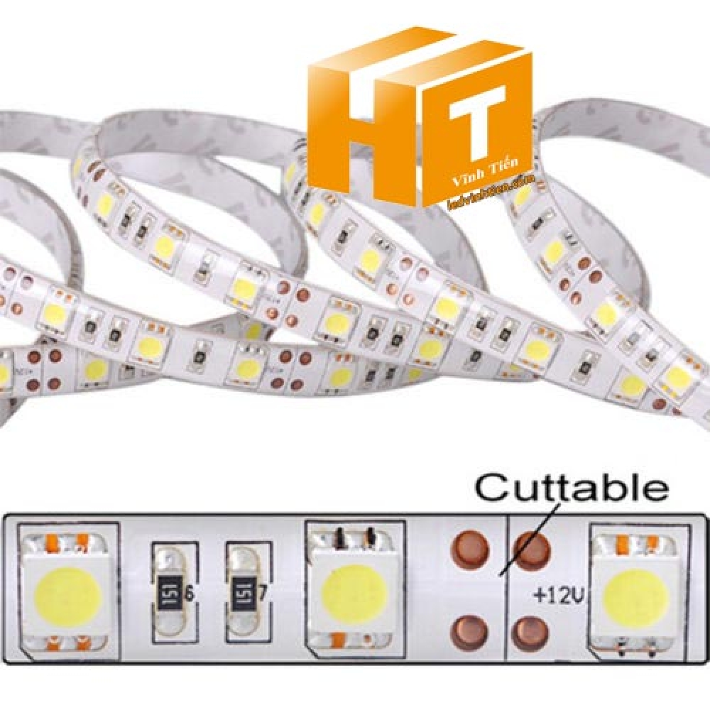 - Tên sản phẩm: Đèn led dây 5050 12V có keo màu trắng (led SMD 5050 có keo 2 lớp)