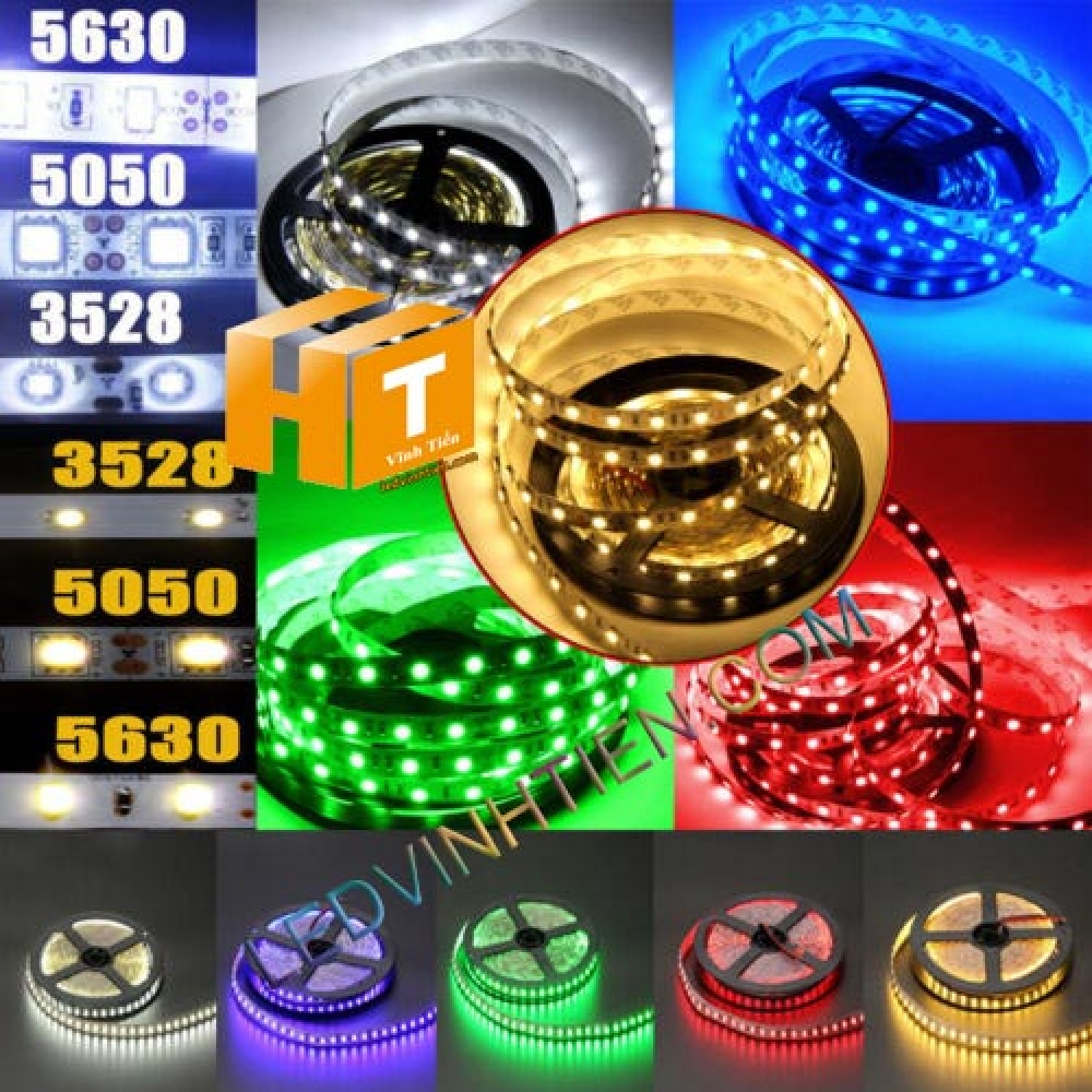 Hình ảnh chụp mọi góc cạnh của đèn led dây dán 5050 dùng điện 12v loại 60 led/m, 120led/m loại tốt, giá rẻ, chất lượng, chính hãng vĩnh tiến