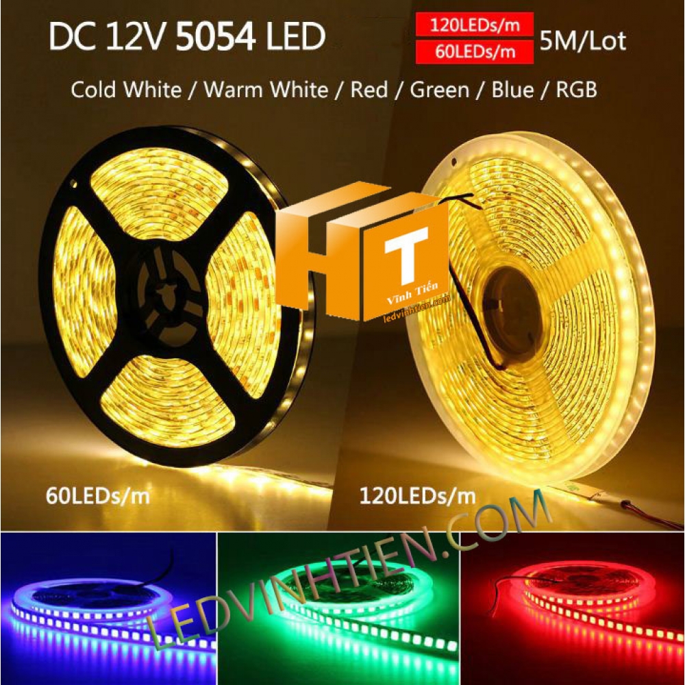 Hình ảnh chụp mọi góc cạnh của đèn led dây dán 5054 dùng điện 12v loại 60 led/m, 120led/m loại tốt, giá rẻ, chất lượng, chính hãng vĩnh tiến