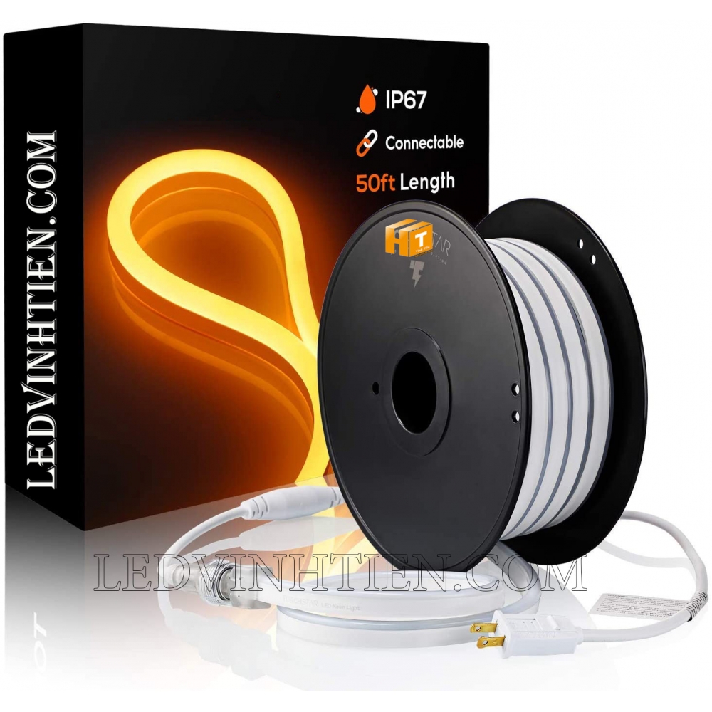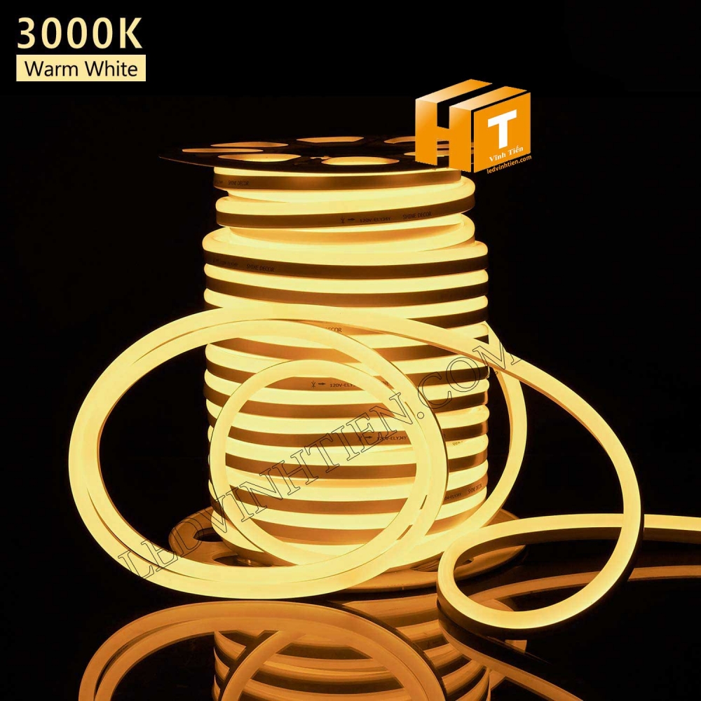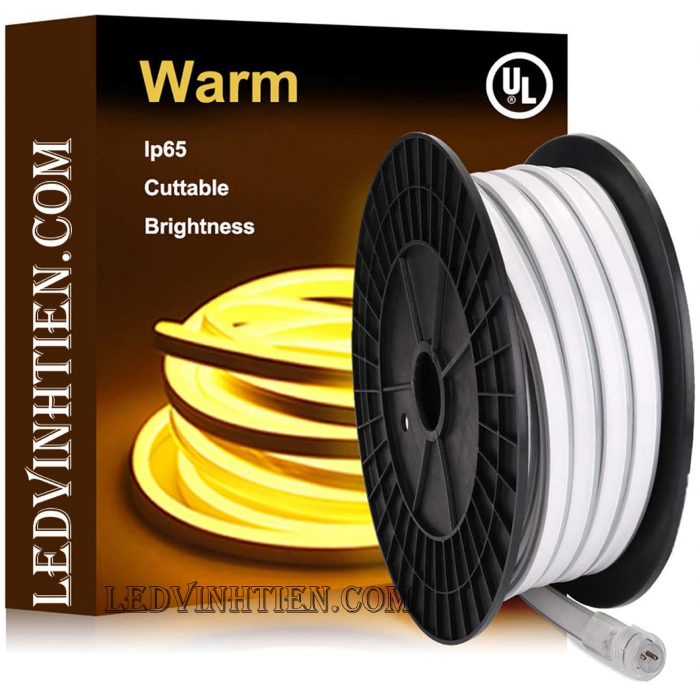 Led dây Flex Neon 220V cuộn 50m, 100m, ánh sáng màu vàng nắng, warm white, Led Neon Sign 220V viền trang trí,đèn decor, hắt trần thạch cao , quấn cây, trang trí cà phê, nhà hàng, khách sạn, led 2835 , led 5050 giá rẻ, loại tốt, chất lượng, dùng chiếu sáng trong nhà, ngoài trời. LED Neon Flex hiệu ứng sáng mờ, hoàn hảo. Dây mềm dễ uốn dẻo. Trang trí nội ngoại thất ưu việt. Điện áp 220V, chống mưa tiêu chuẩn IP65, 66, 67, dễ sử dụng, dể đấu nối, phân phối sỉ bởi công ty đèn led vĩnh tiến, ledvinhtien.com
