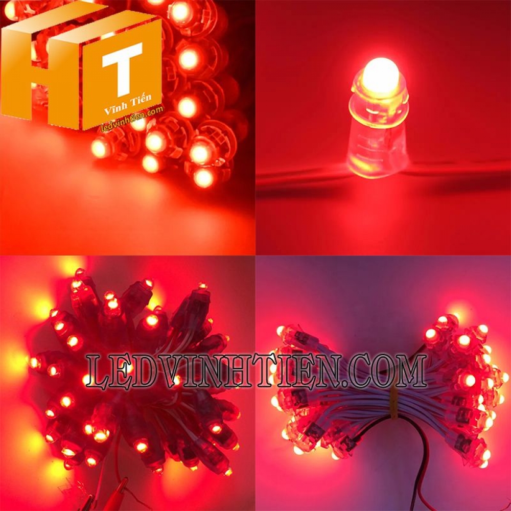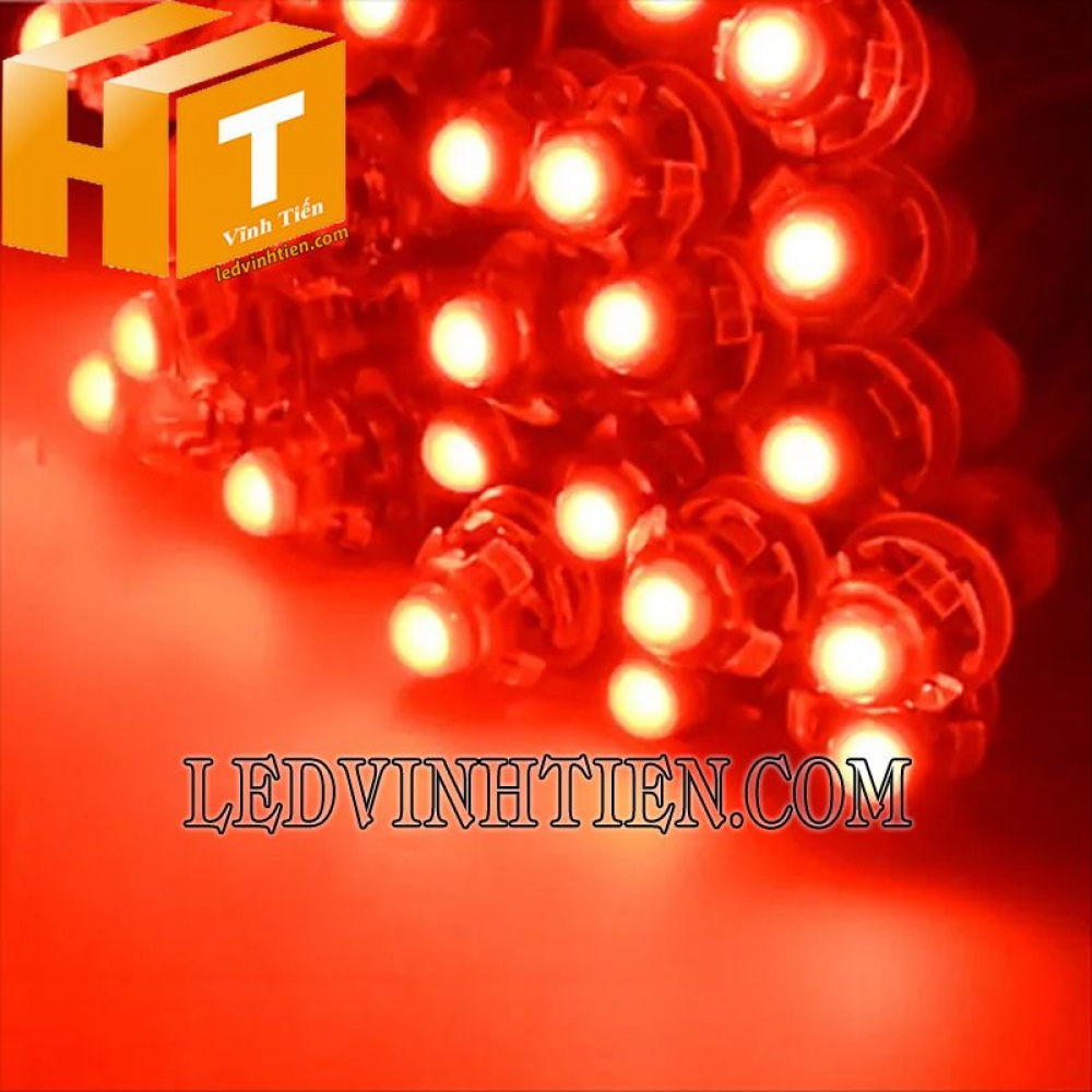 - Bóng led đúc f7 đầu đục màu đỏ nối liền với nhau 50 đèn led, cực sáng, với góc chiếu sáng 180°.