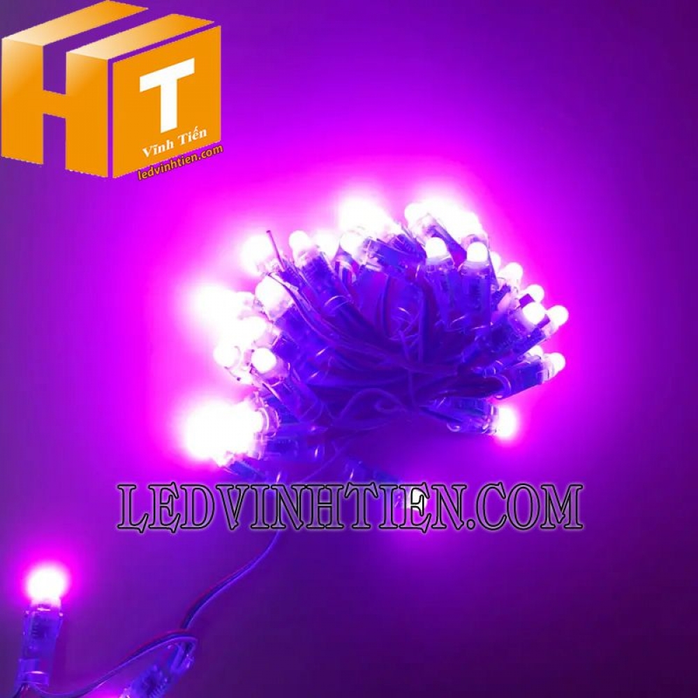 • Bóng led đúc f7 đầu đục màu tím nối liền với nhau 50 đèn led, cực sáng, với góc chiếu sáng 180°.