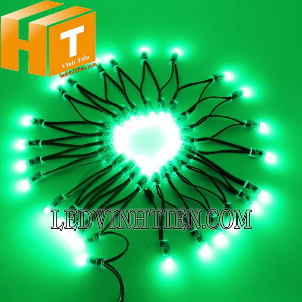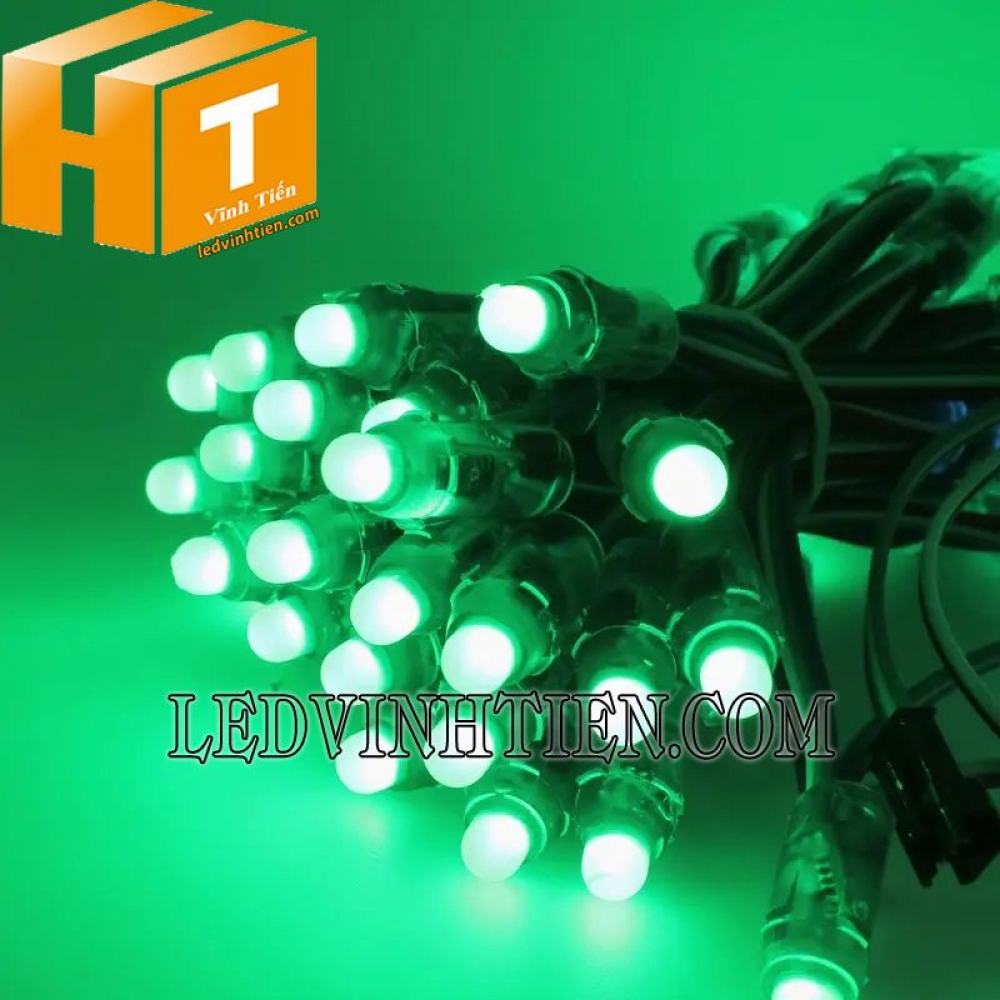 - Bóng led đúc f7 đầu đục màu xanh lá nối liền với nhau 50 đèn led, cực sáng, với góc chiếu sáng 180°.