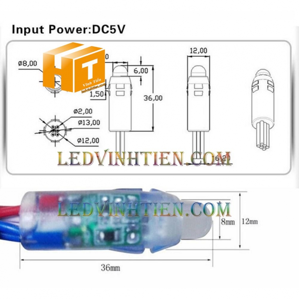 - Điện áp đầu vào: DC5V / 12V, 0,3 W / một con led đúc.
