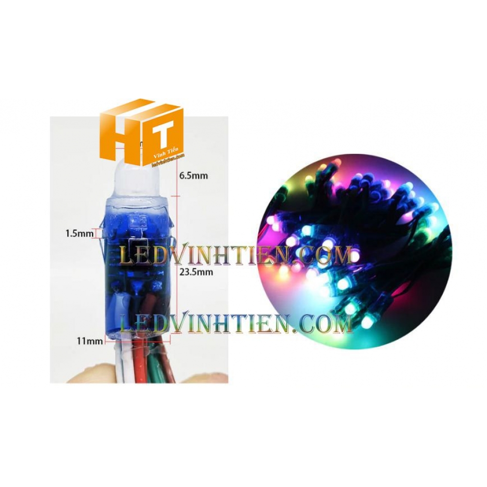 Hình ảnh chi tiết bóng led đúc F8 bảy màu, RGB, loại tốt, giá rẻ, chất lượng, dùng chiếu sáng ngoài trời, chính hãng ledvinhtien.com