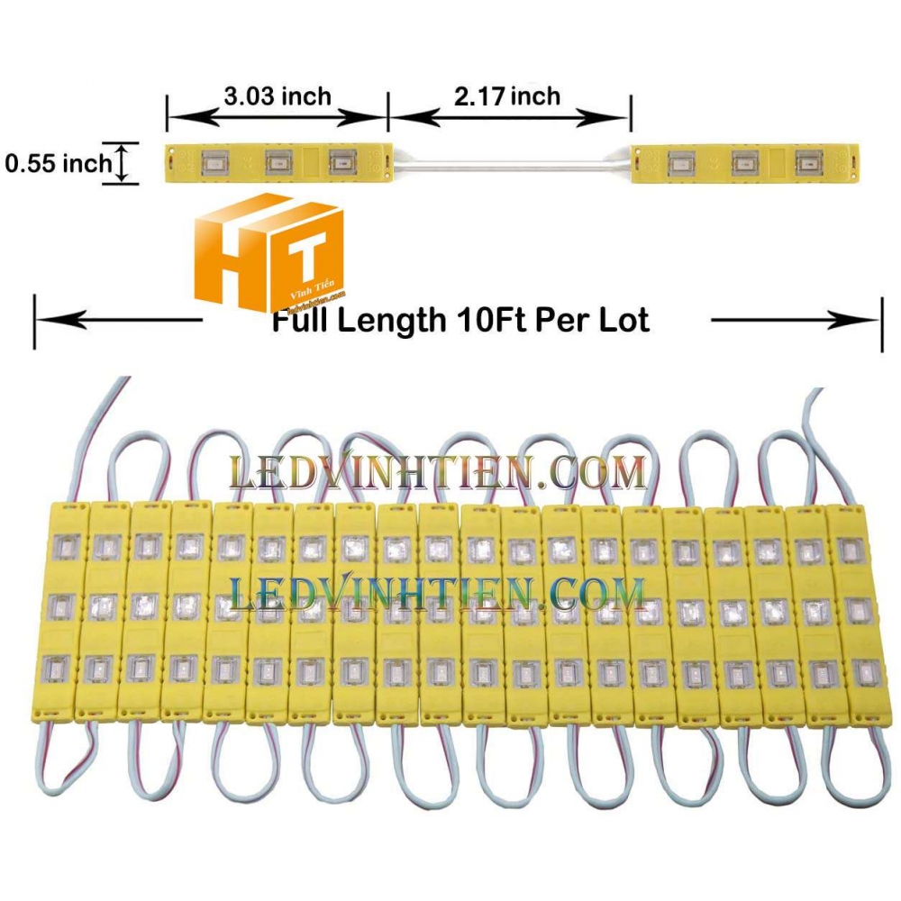 Hình ảnh chi tiết led module 3 bóng 5730 ánh sáng màu vàng nắng, loại tốt, giá rẻ, chất lượng, dùng chiếu sáng ngoài trời, chính hãng ledvinhtien.com.