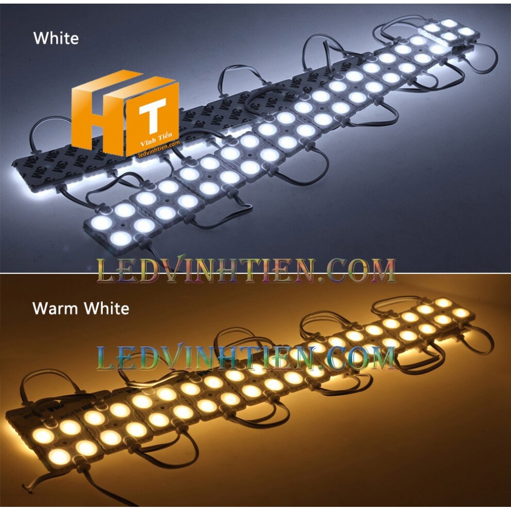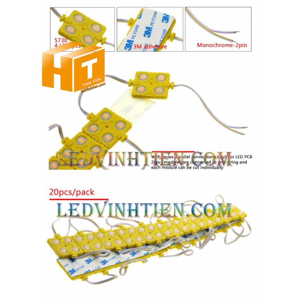 Hình ảnh chi tiết led module 4 bóng samsung ánh sáng màu vàng, loại tốt, giá rẻ, chất lượng, dùng chiếu sáng ngoài trời, chính hãng ledvinhtien.com