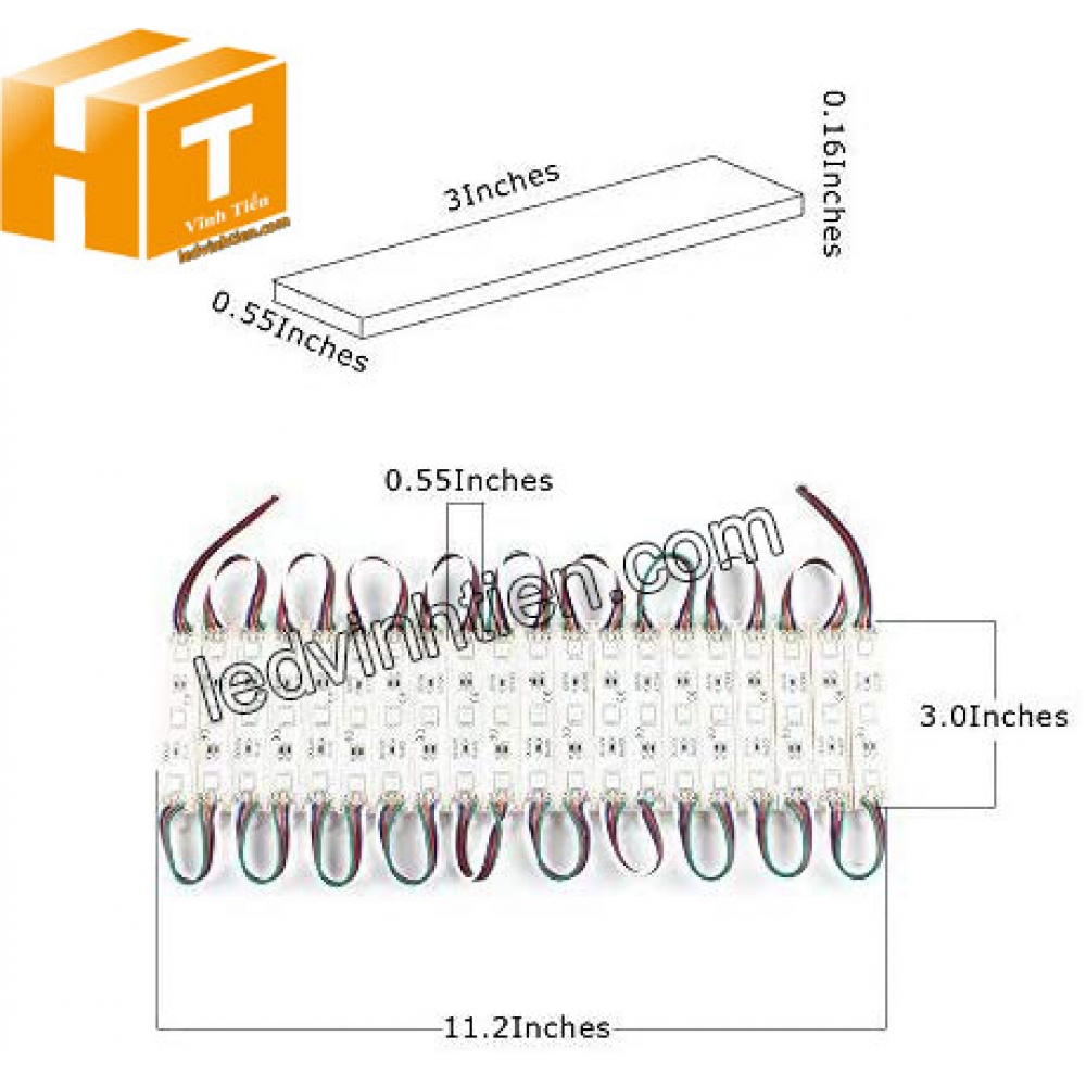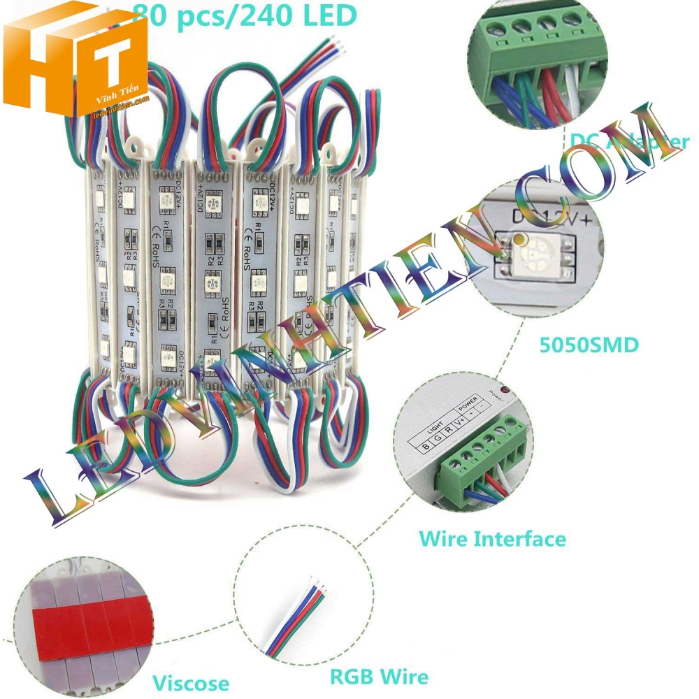 Hình ảnh chi tiết đèn led hắt 3 bóng 5050 RGB (led module 3 bóng RGB) loại tốt, giá rẻ, siêu sáng dùng chiếu sáng ngoài trời, chính hãng ledvinhtien.com