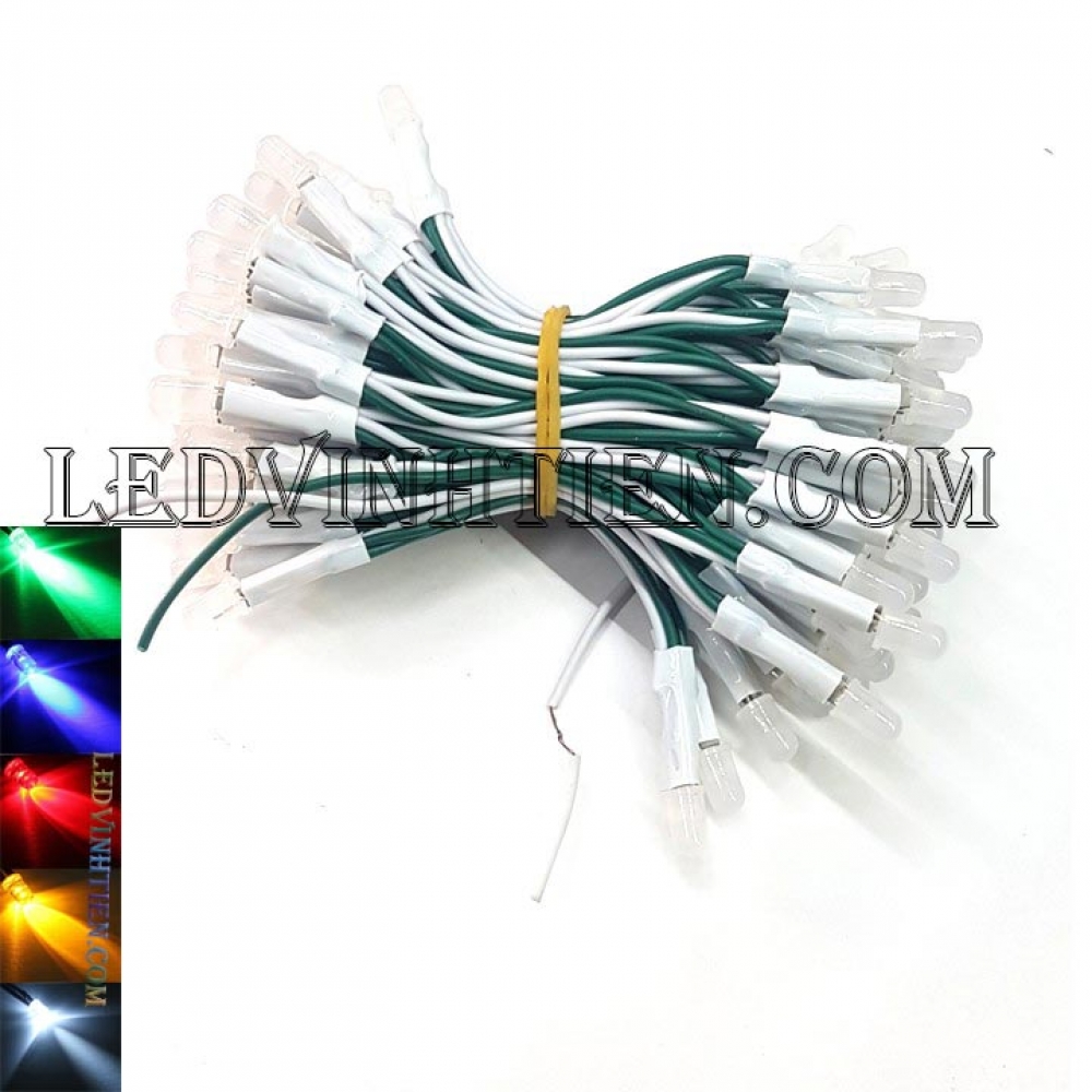Hình ảnh chi tiết bóng led ruồi liền dây 5mm màu xanh lá, loại tốt, giá rẻ, chất lượng, dùng chiếu sáng ngoài trời, chính hãng ledvinhtien.com