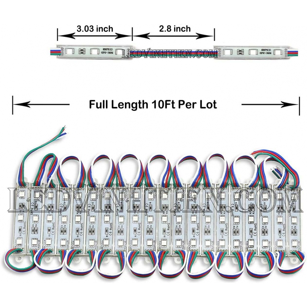 Hình ảnh chi tiết đèn led hắt 3 bóng 5054 RGB (led module 3 bóng RGB) loại tốt, giá rẻ, siêu sáng dùng chiếu sáng ngoài trời, chính hãng ledvinhtien.com