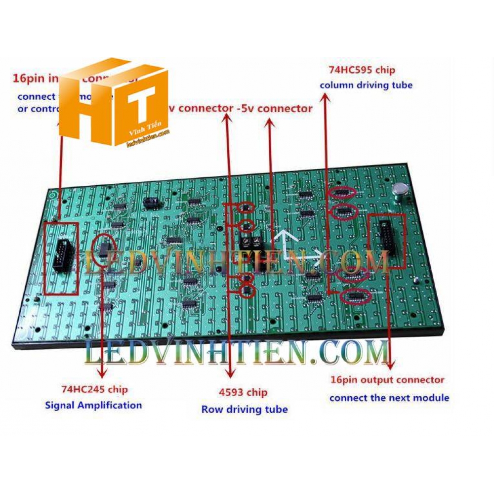 - Led P10 ngoài trời (Outdoor) còn có 2 kiểu tần số quét là 1/4 và 1/2 so với Led P10 trong nhà (indoor) chỉ có 1/4. Cho nên công suất tiêu thụ của module ngoài trời cao hơn module trong nhà.