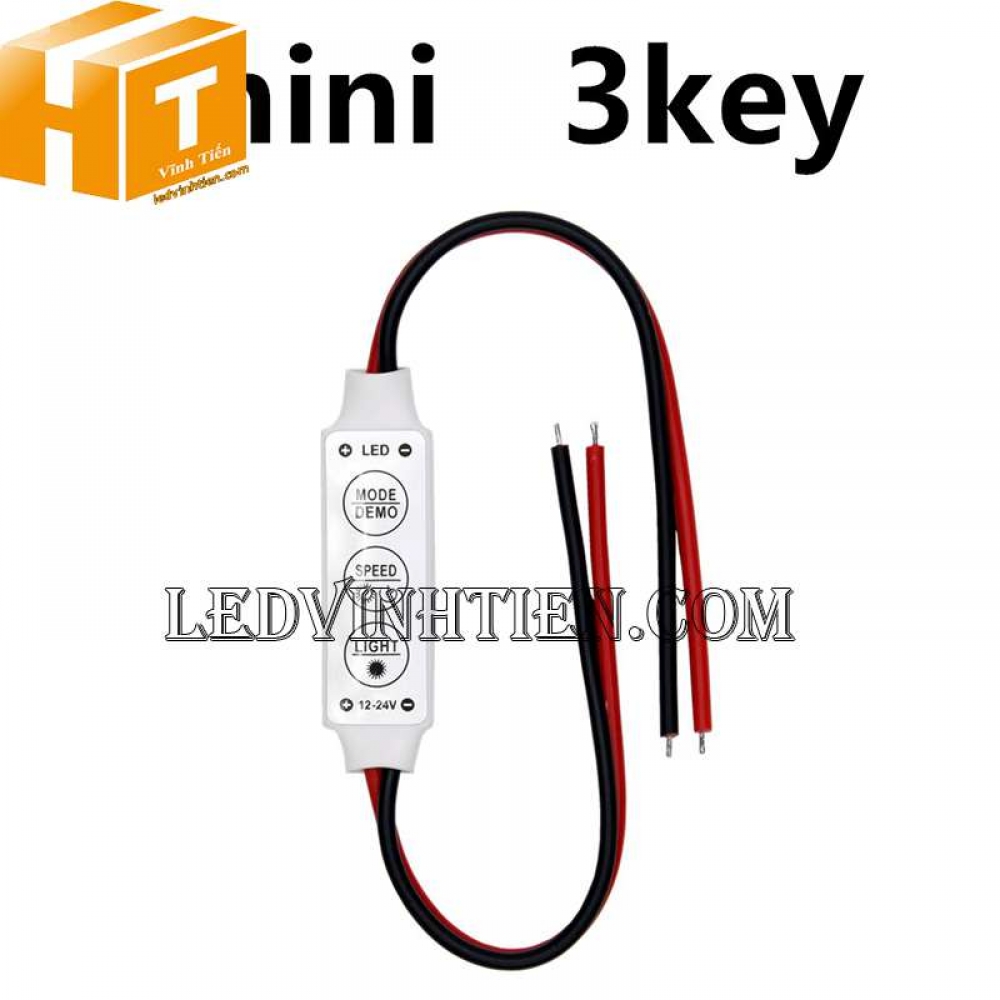 - Nút bấm: Có 3 nút điều khiển (Bạn có thể dễ dàng thay đổi chế độ động, tốc độ và độ sáng bằng cách nhấn 3 chìa khóa trên cơ thể thon gọn. Nó cũng đã tự động ghi nhớ chức năng)