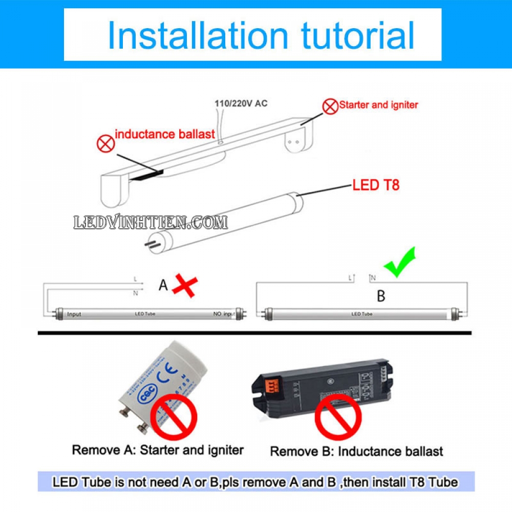 - Ngắt điện trước khi lắp đặt thiết bị Đèn Tuýp Led trên máng đèn cũng như các thiết bị chiếu sáng khác trong ngôi nhà của bạn.