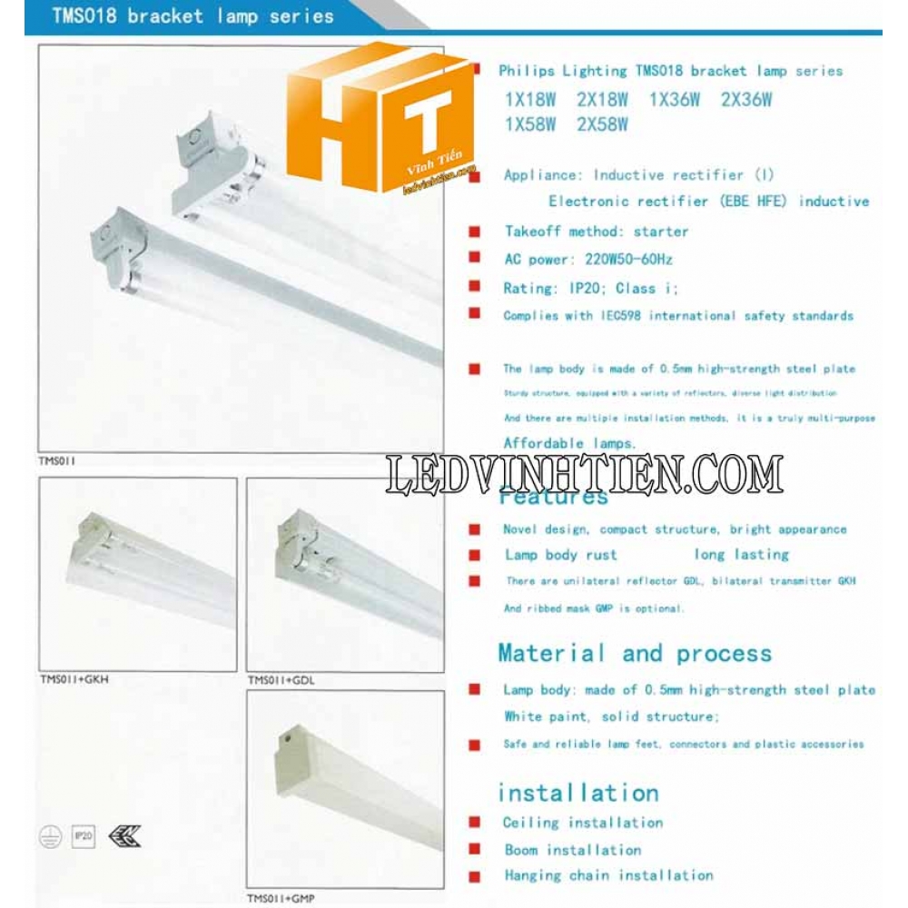 • Tên sẩn phẩm: Máng đèn tuýp led Philips