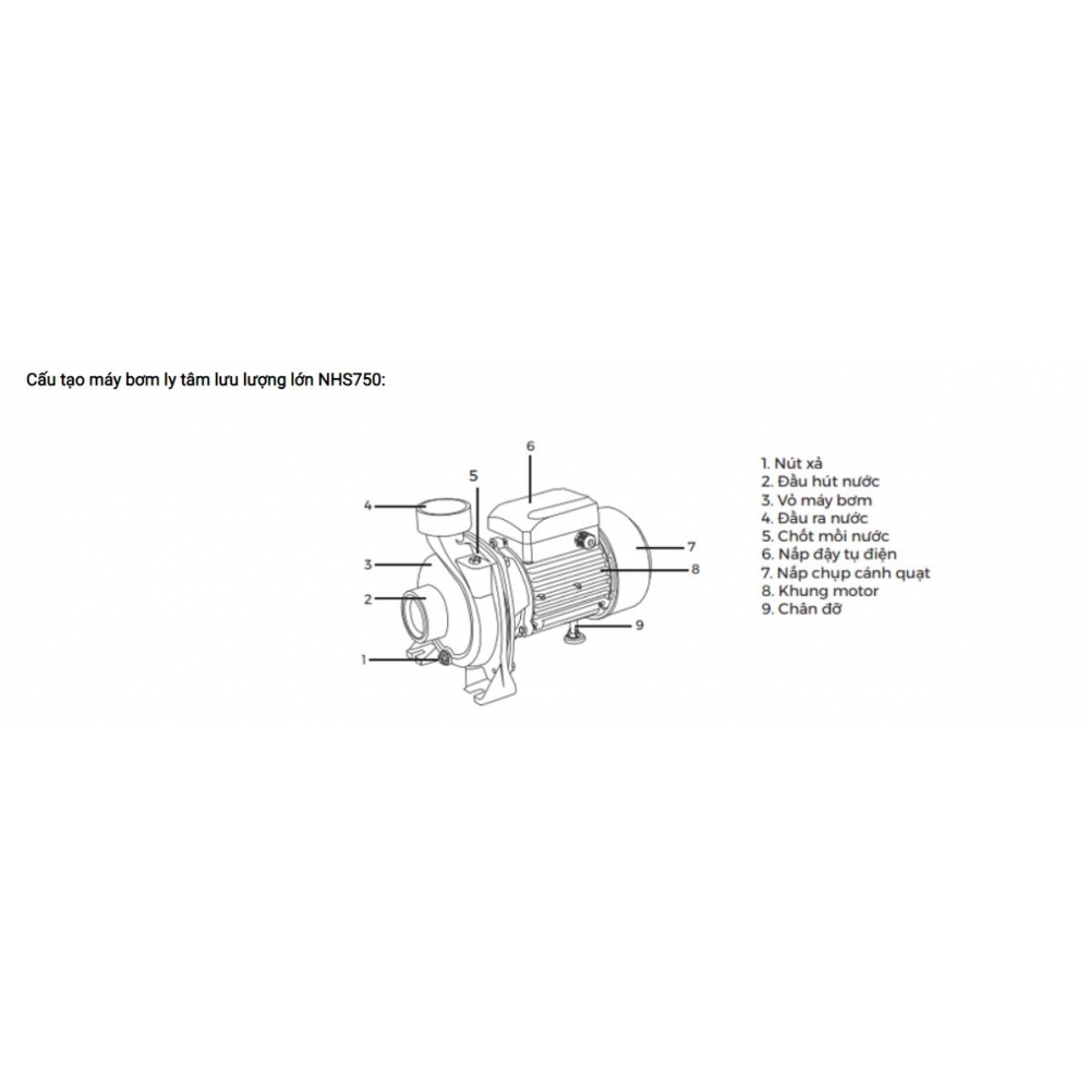 Cách lắp đặt máy bơm nước lưu lượng Nanoco NHF1100 - 1100W (như hình ở trên)