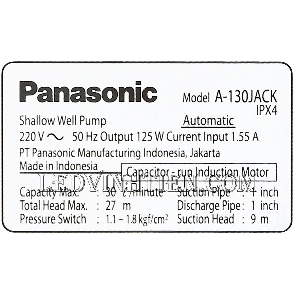 Thông số kỹ thuật máy bơm nước tăng áp A-130JACK loại tốt, giá rẻ, chính hãng panasonic, loại tốt