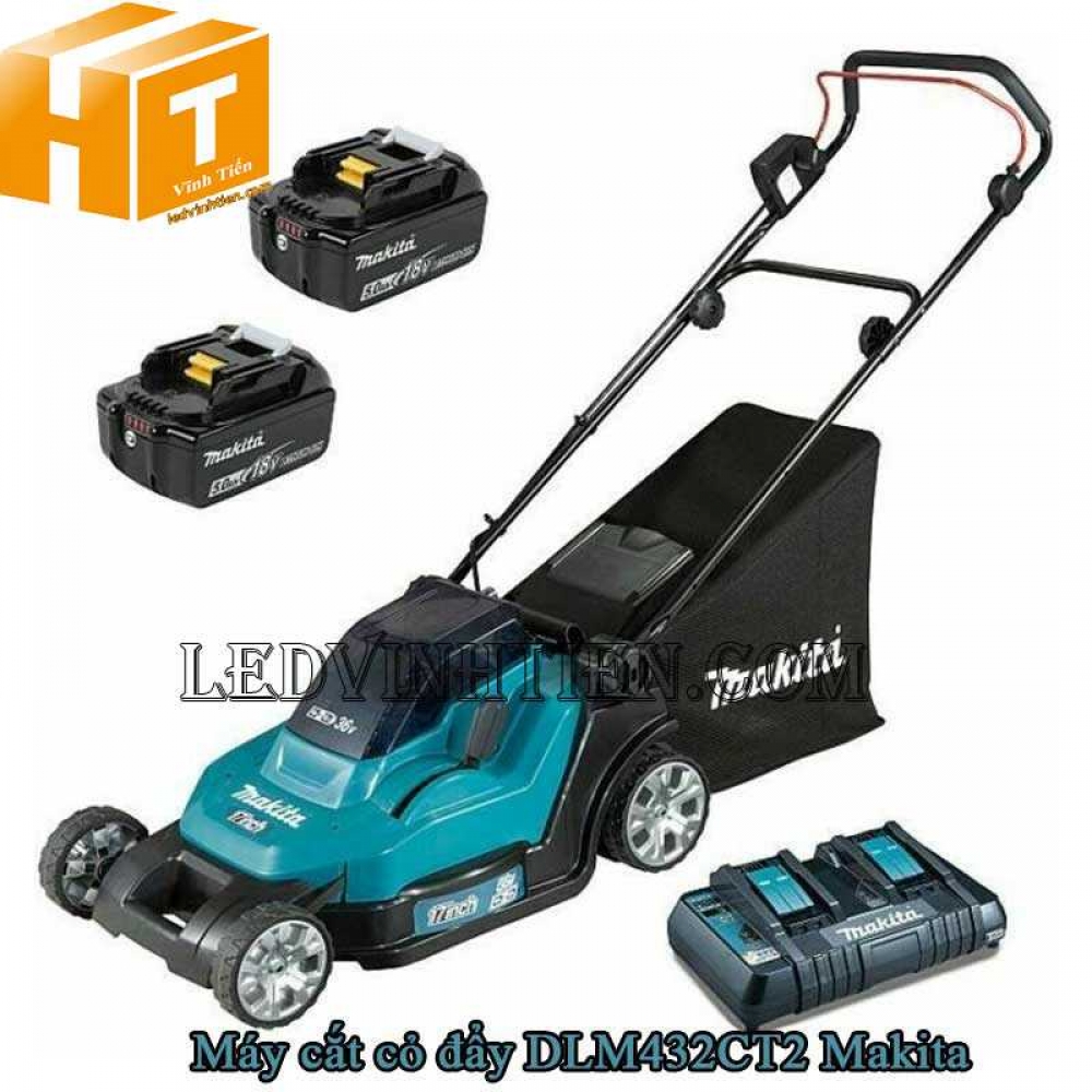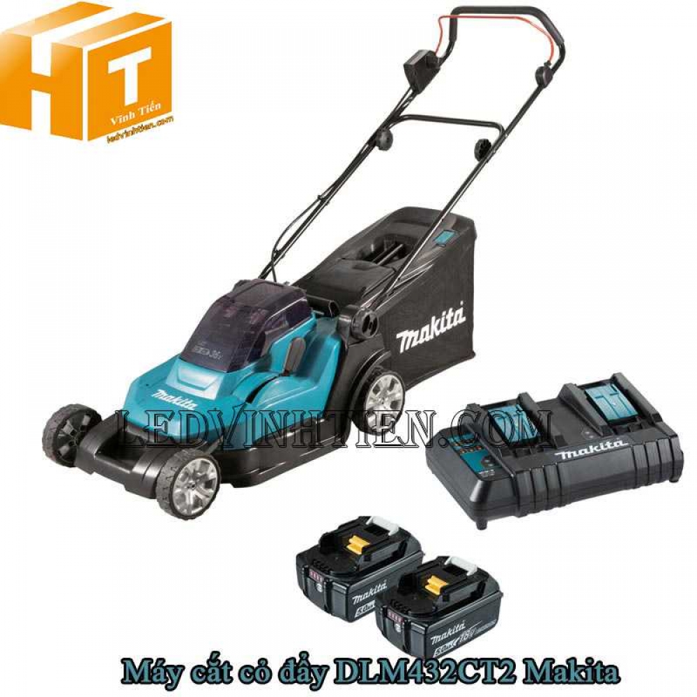- Máy cắt cỏ đẩy dùng pin Makita DLM432CT2 có vẻ ngoài cứng cáp, tay cầm chắc chắn, cắt được đa dạng loại cỏ với công suất lên tới 950W và tốc độ cắt tối đa 3600 vòng / phút.