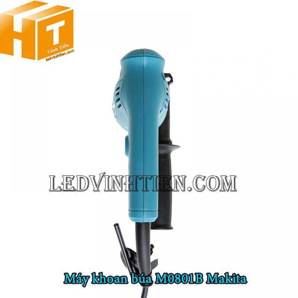 - Máy khoan búa Makita M0801B có vẻ ngoài cứng cáp, tay cầm chắc chắn, khoan được đa dạng vật liệu với công suất 500W và tốc độ không tải tối đa 3200 vòng/phút.