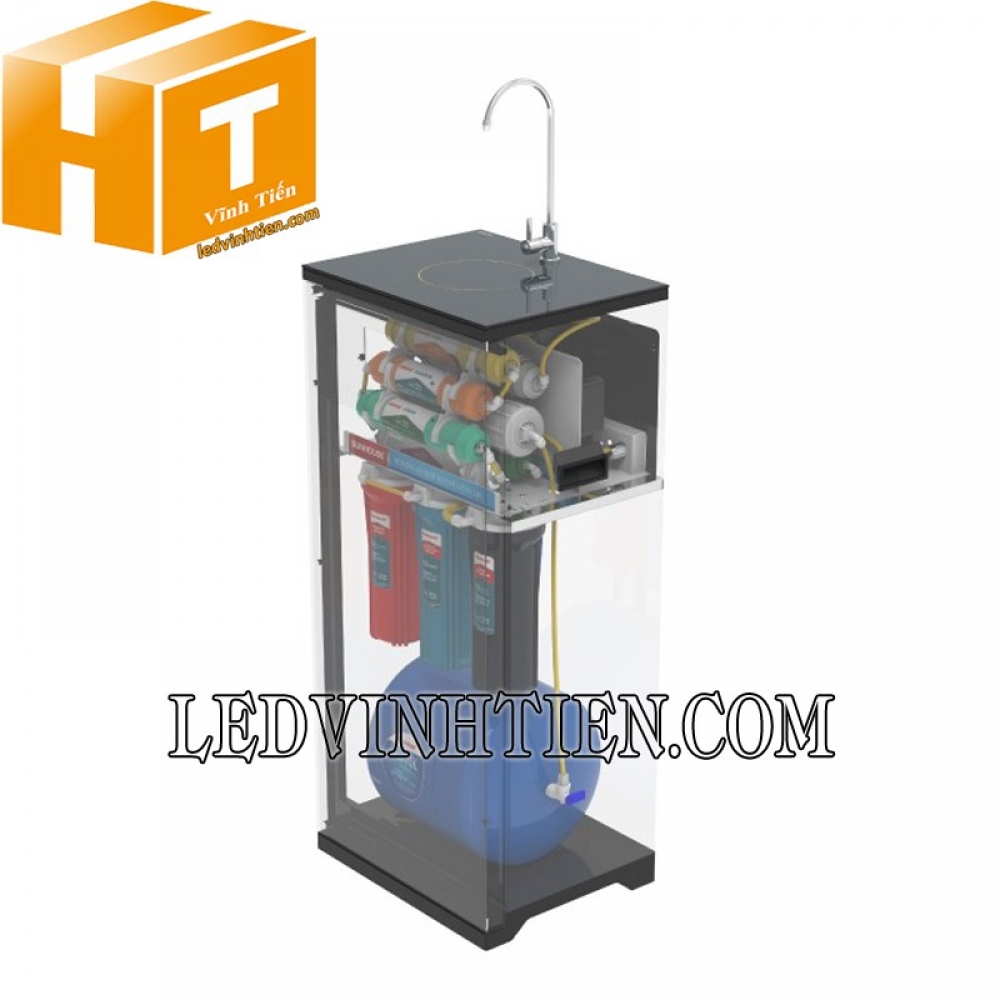 Máy lọc nước R.O 10 lõi SUNHOUSE SHA88116K có vỏ tủ làm kính cường lực với họa tiết tối giản, hiện đại, phù hợp với không gian nội thất sang trọng. Thiết kế kính full viền mặt trên và mặt trước tạo sự khác biệt với những sản phẩm máy lọc nước phổ biến trên thị trường.