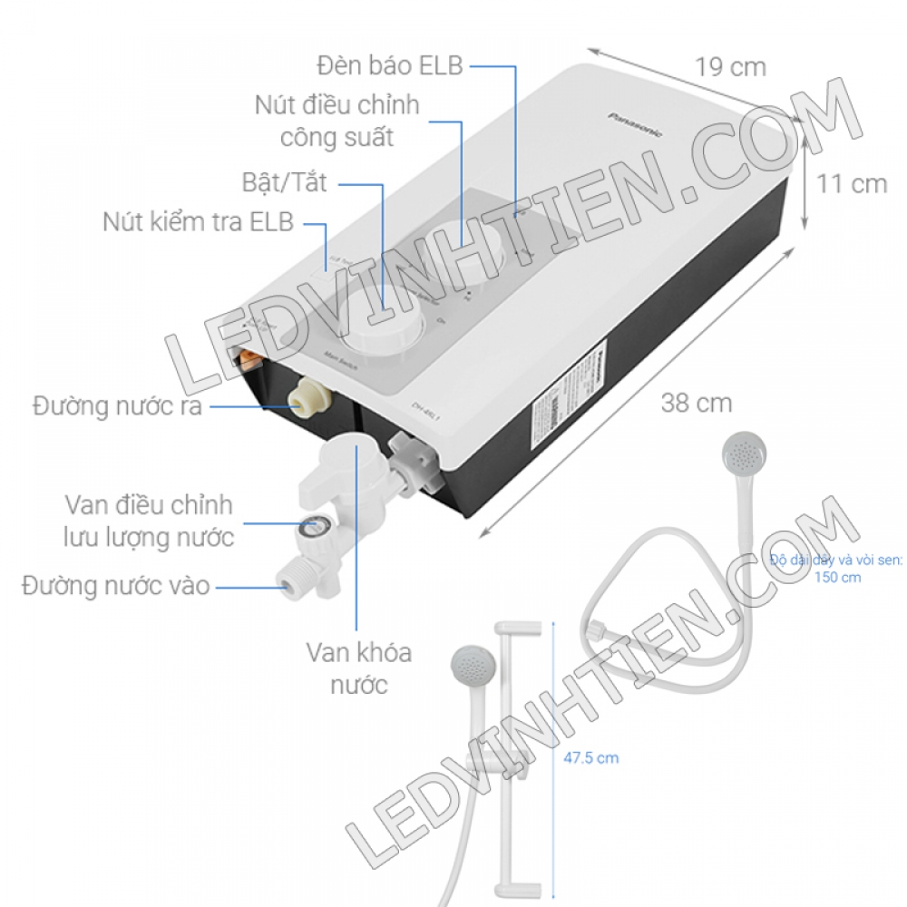 Thông số kỹ thuật của máy nước nóng trực tiếp DH-3RL2VH loại tốt, chính hãng Panasonic