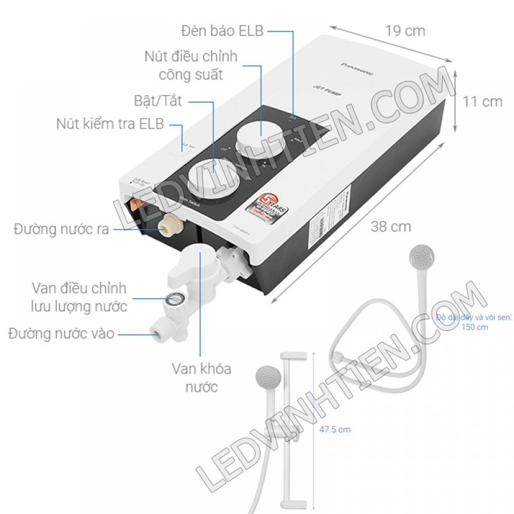 Thông số kỹ thuật của máy nước nóng trực tiếp DH-3RP2VK loại tốt, chính hãng Panasonic