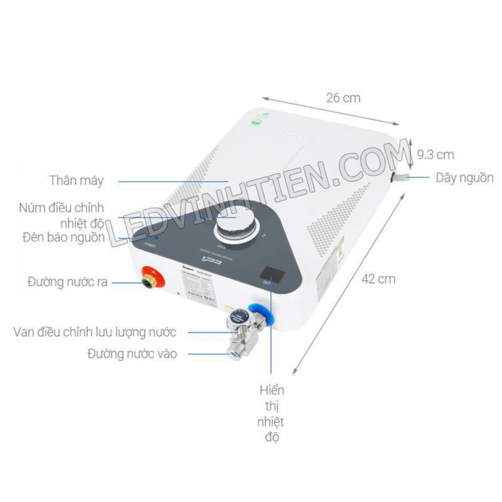 - Lưu lượng nước: 2~8 Lít/Phút